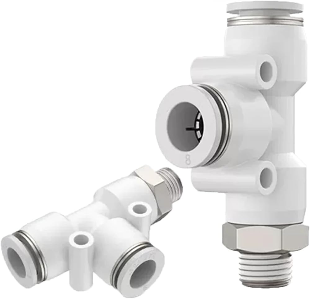 PD White Pneumatic Connector T-type Side Tee Brass Thread PT1/8 "1/4" 3/8 "1/2" M5 PU Pipe Hose 4 6 8 10 12mm 1Pcs