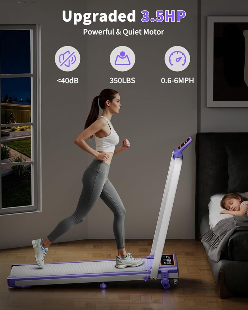 【محرك هادئ عالي الأداء بقوة 3.5 حصان】يعمل جهاز المشي المحمول هذا بمحرك قوي بقوة 3.5 حصان، ويوفر تشغيلًا سلسًا بسرعات تصل إلى 6 ميل في الساعة ويدعم المستخدمين الذين يصل وزنهم إلى 350 رطلاً. مع الحفاظ على مستويات الضوضاء أقل من 40 ديسيبل، يعد هذا خيارًا ممتازًا للشقق ومساحات المعيشة المشتركة - حافظ على نشاطك دون إزعاج الآخرين.