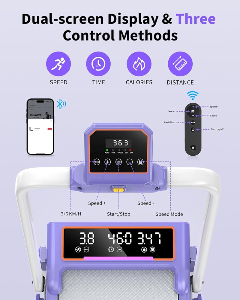 【شاشات LED مزدوجة للمراقبة دون عناء 】تظل وسادة المشي ذات الميل على علم تام بشاشات LED عالية الوضوح على كل من القاعدة ووحدة التحكم. قم بإدارة إعداداتك بسهولة من خلال وحدة التحكم أو التطبيق الرياضي. اتصل عبر البلوتوث بالتطبيق لتصميم تدريبات مخصصة ومراقبة الإنجازات والانغماس في مسار جري افتراضي يحاكي الشعور بالهواء الطلق!