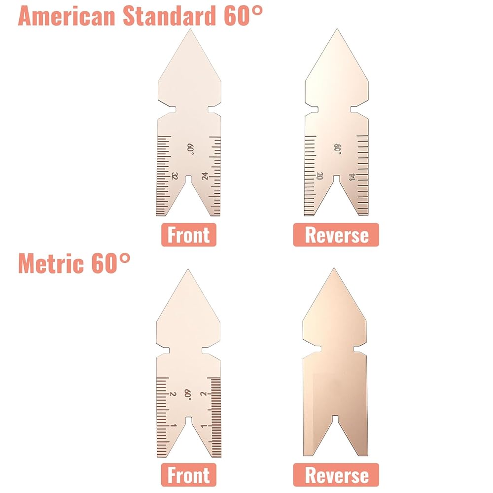【Clear and User-Friendly Design】Engineered for effortless operation, these 55 and 60-degree metric system centre gages feature practical design elements that enhance usability. Each blade incorporates small holes on both ends, allowing for easy rotation and secure positioning when aligning the gauge with a thread. The numbers and increment lines are deeply and clearly engraved for excellent legibility, even in low-light shop conditions.