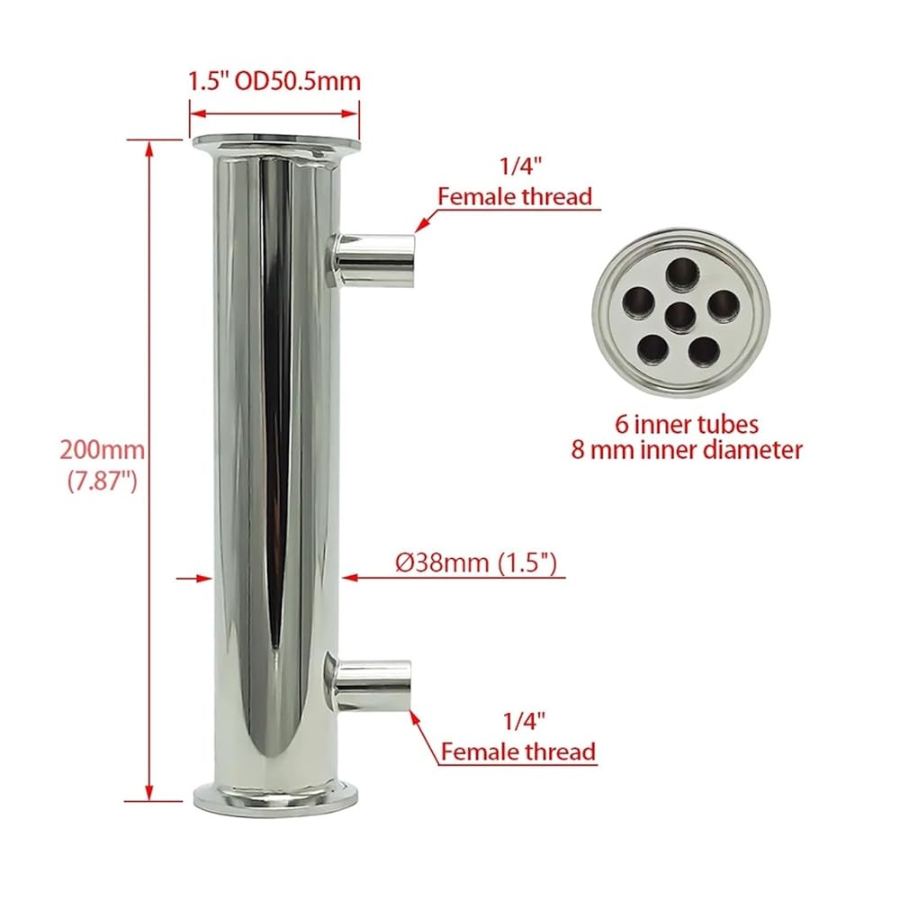Dephlegmator 1.5" 38mm(OD51mm)304Stainless Steel Reflux Condenser Height 200mm Inside 6 Tubes