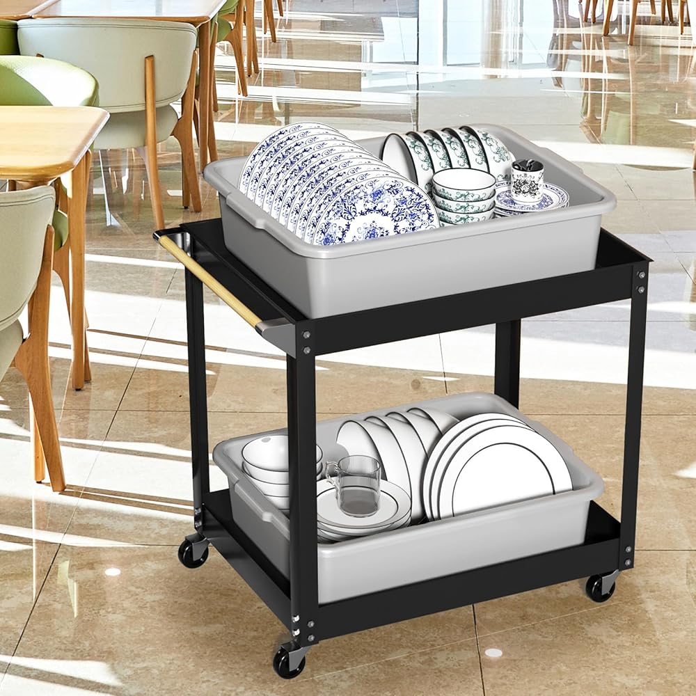 • These bus pans have a smooth surface that makes them easy to clean and have handles on both sides for easy lifting