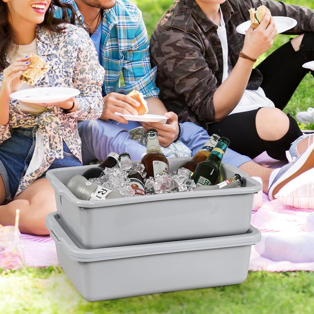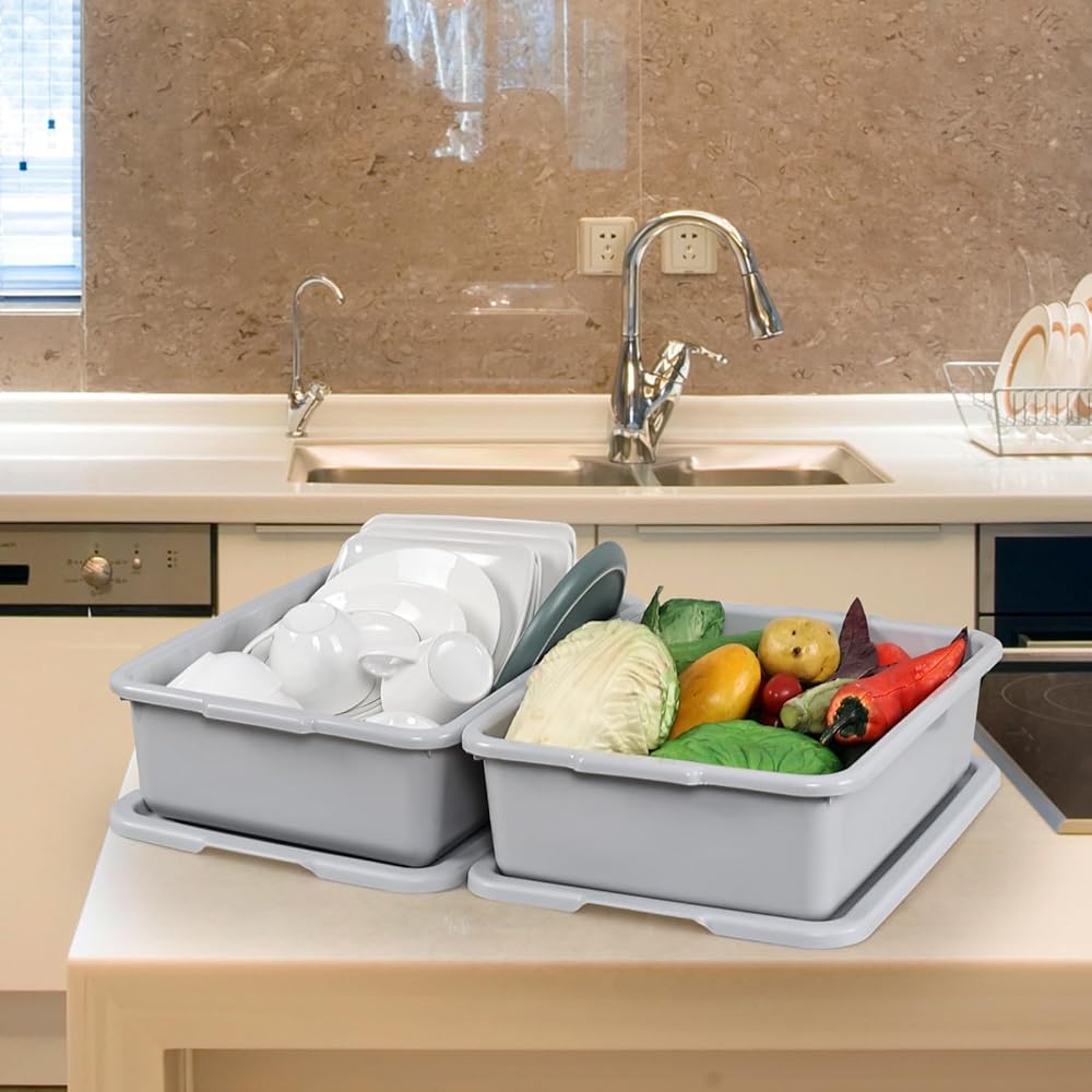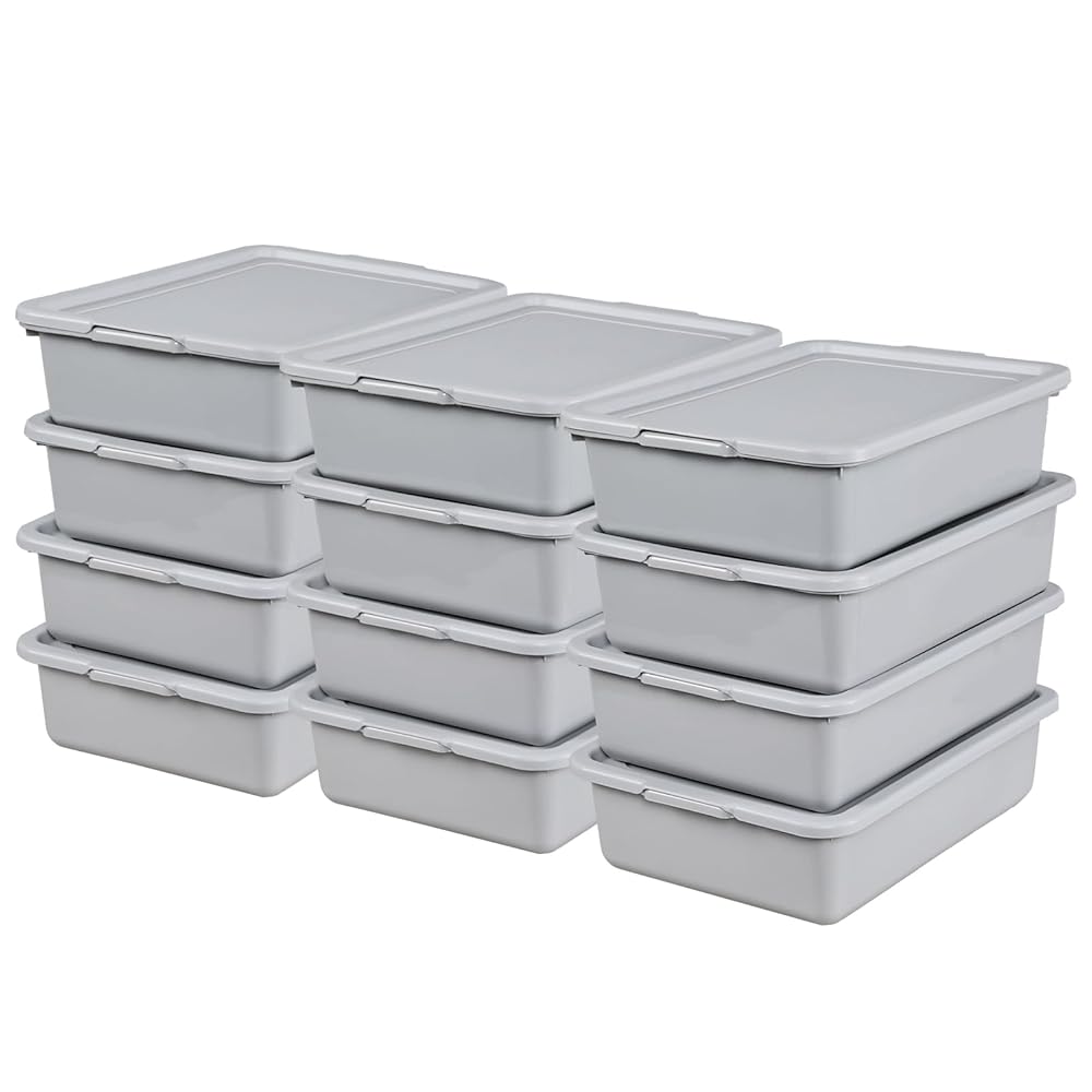 حقائب حافلات كيدريم سعة 13 لتر مع غطاء، وحوض أطباق بلاستيكي، وصينية حافلة للمطاعم، باللون الرمادي، 12 عبوة