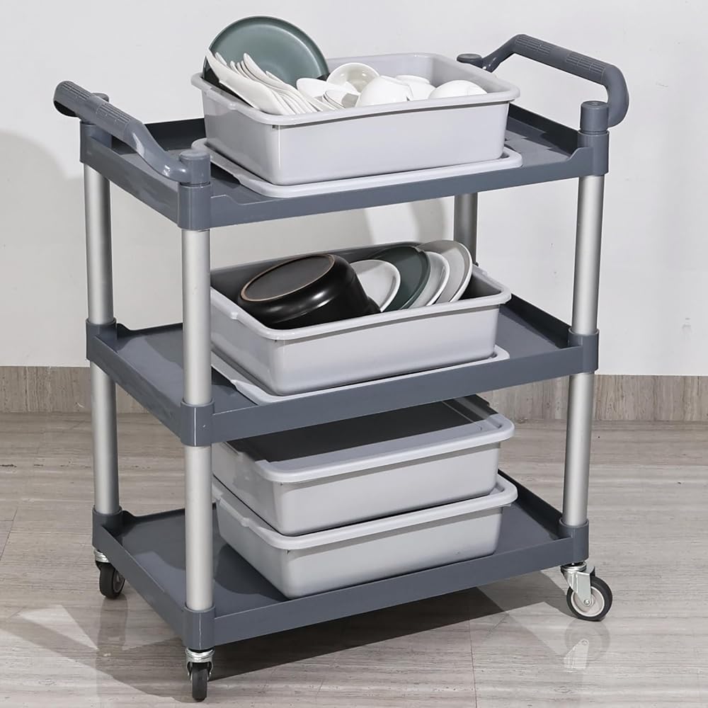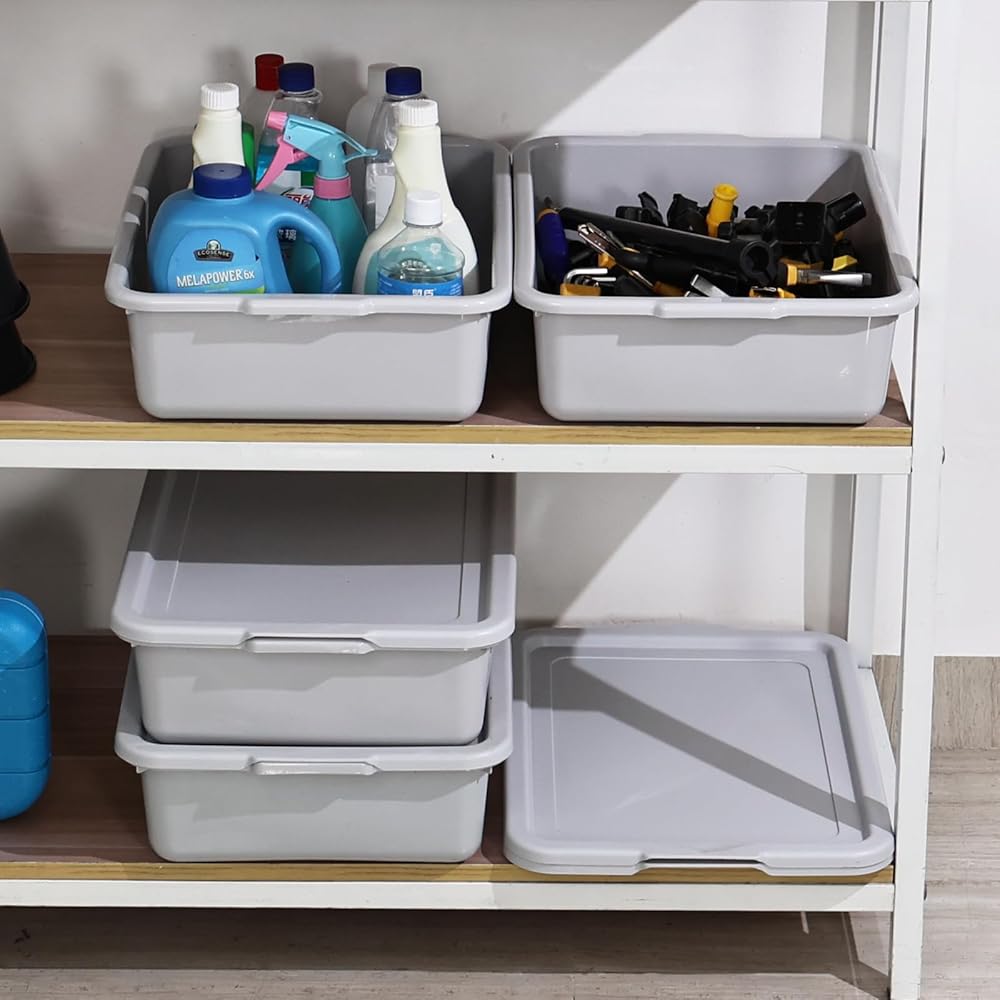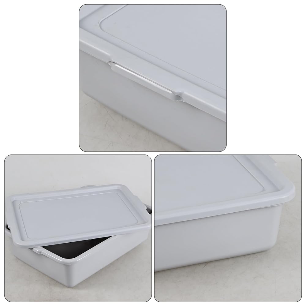 - Including 12 plastic bus tubs with lids, each outside size is 17.52" x 12.83 x 4.7"