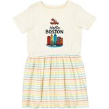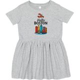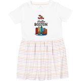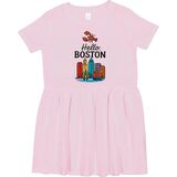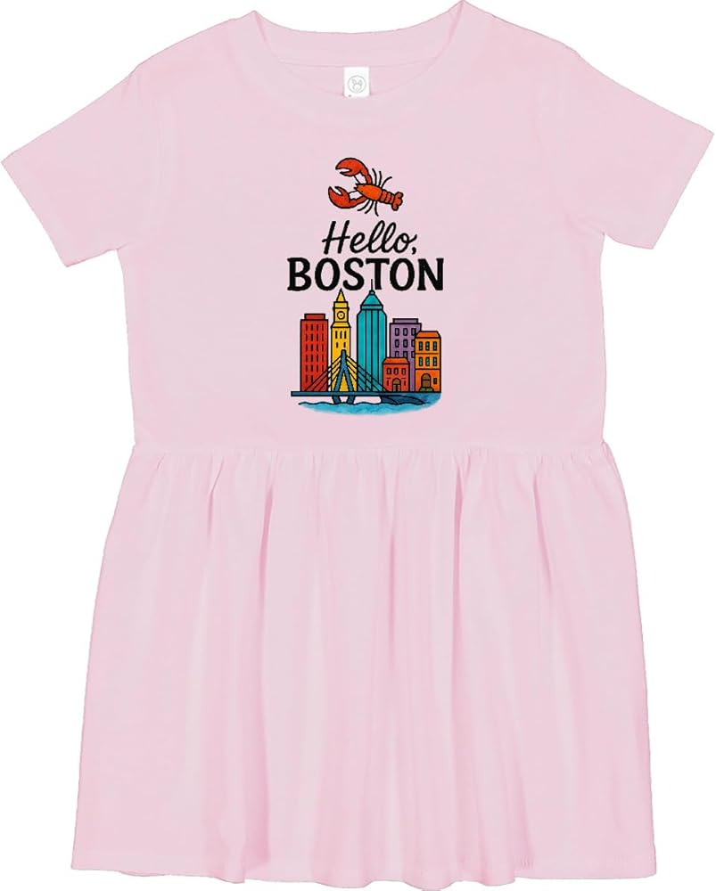 Experience the vibrant spirit of Boston with this eye-catching skyline design featuring a playful lobster, perfect for fans of this iconic city. The colorful depiction of Boston's architectural landmarks, along with the charming lobster, makes this Toddler Dress a great way to showcase your love for the city.