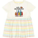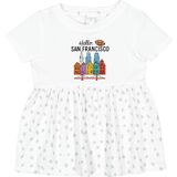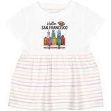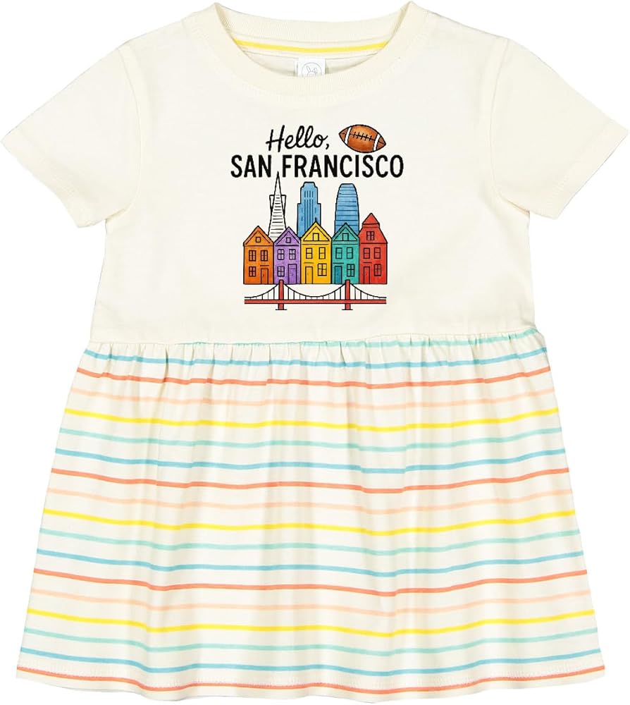 Celebrate the vibrant spirit of San Francisco with this lively design featuring iconic city landmarks and a football motif. Perfect for fans of the Bay Area, the colorful cityscape captures the essence of this dynamic location. Show your love for San Francisco with this stylish and bold design on your favorite Infant Dress.