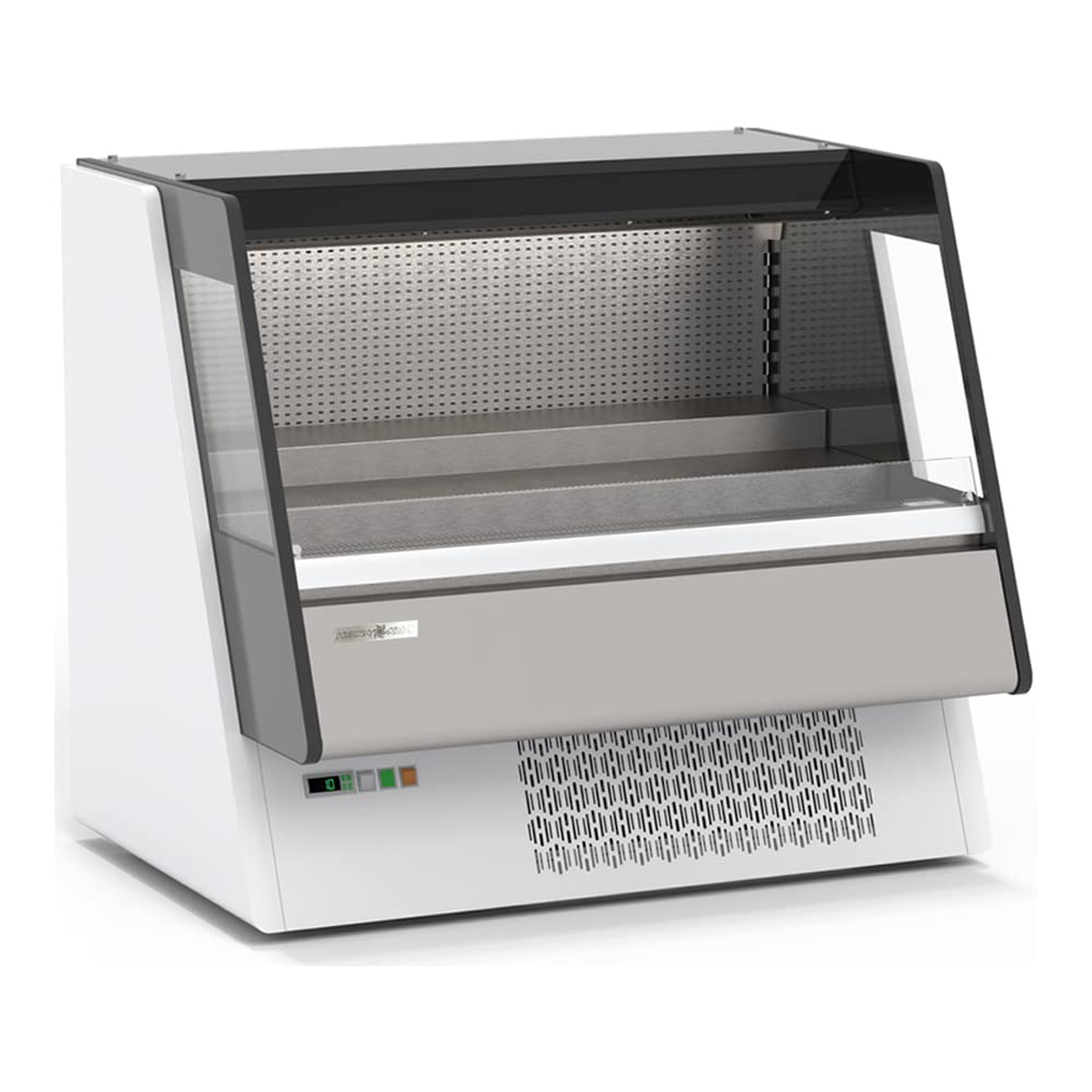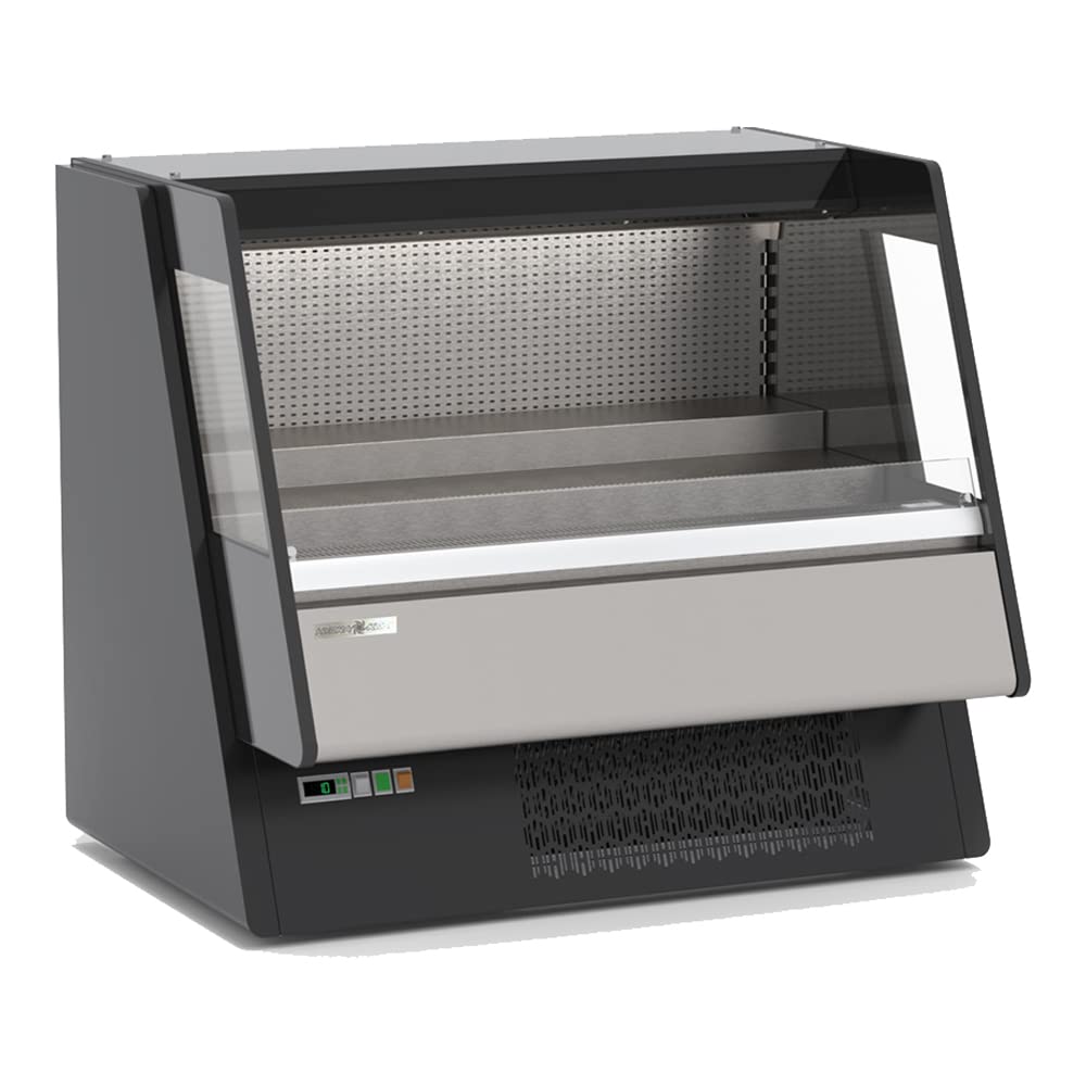 Hydra-Kool Grab-N-Go Open Merchandiser, multiplexible, 35-7/8"W x 36-9/16"D x 42-15/16"H, (2) fixed tiers & deck, LED lighting in canopy & under all shelves, digital controller, PVC coated grey steel interior, PVC coated silver front panel & wood laminate covered end panels exterior, adjustable feet, R404a refrigerant, self-contained refrigeration, ETL-Sanitation, cETLus