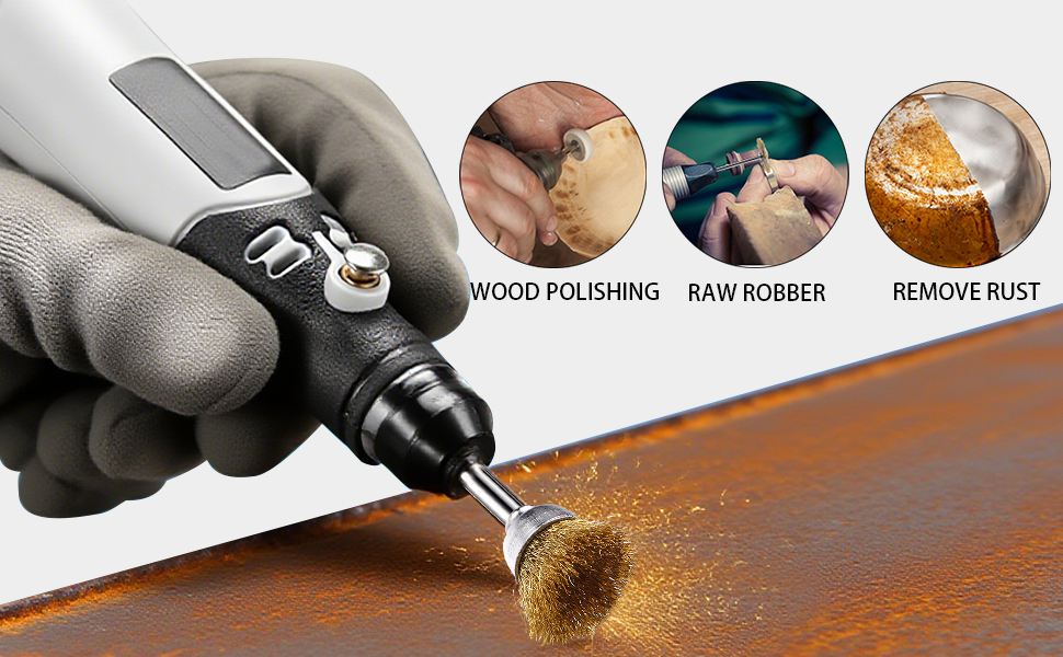 【موجه دافئ】- قم بتركيب المثقاب اليدوي، وأداة الحفر، وأداة Dremel الدوارة مع طوق مقاس 1/8 بوصة. تحكم في سرعة أداتك الدوارة، لا تعمل بما يزيد عن 10000 دورة في الدقيقة. قبل استخدام مجموعات الفرش السلكية، يرجى التأكد من ارتداء نظارات السلامة ومعدات الحماية!