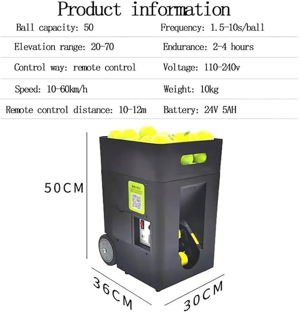 ➤50 Ball Capacity: The automatic tennis ball launcher can hold up to 50 tennis balls; DC 24V is convenient for quick charging at any time, and the mobile power supply can provide 2-4 hours of battery life; improve training efficiency and perfect skills