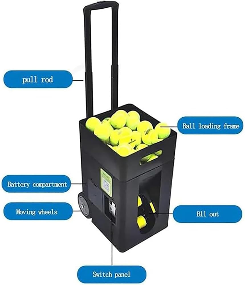 آلة كرات التنس، قاذفة كرات التنس الأوتوماتيكية، سعة 50 كرة، زاوية إطلاق قابلة للتعديل، تدريبات مبرمجة مسبقًا ومخصصة، للمبتدئين في التدريب الرياضي الفردي