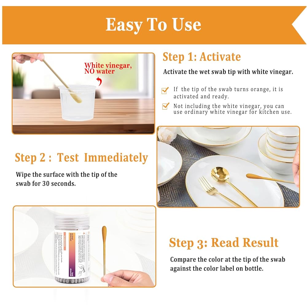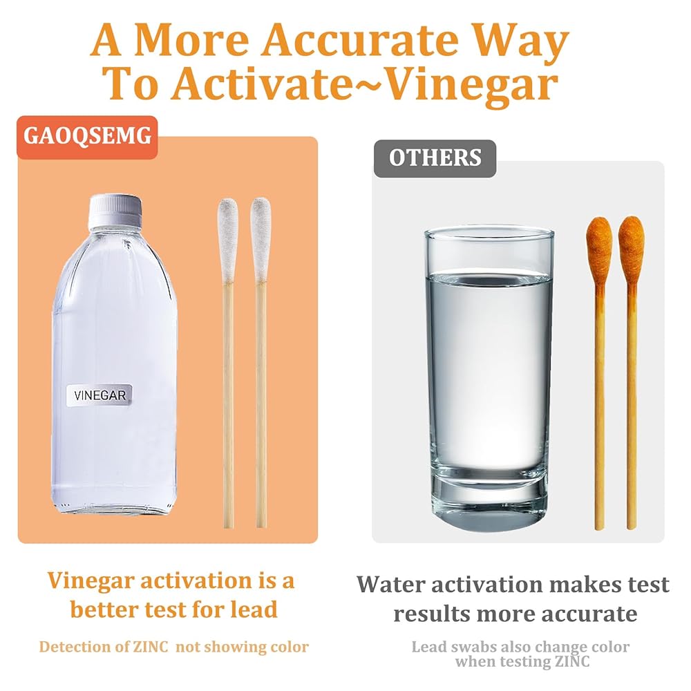 【سهلة الاستخدام】- تم تصميم مسحة اختبار الرصاص من GAOQSEMG مع وضع البساطة والراحة في الاعتبار. أولاً، قم بتنشيط طرف المسحة المبللة بالخل الأبيض؛ ثم اختبره على الفور، امسح السطح بطرف المسحة لمدة 30 ثانية؛ وأخيرًا، لاحظ تغير لون طرف أعواد القطن.
