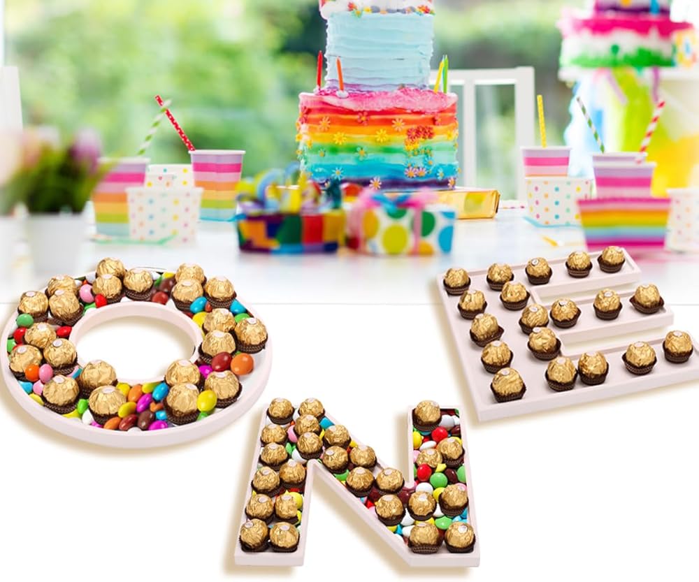 3 قطع من الحروف الكبيرة مقاس 30.48 سم، صينية واحدة قابلة للملء، صواني تقديم الطعام للأطفال، صينية حلوى الشوكولاتة بحروف خشبية من أجل هدايا حفلات استقبال المولود الجديد (واحدة - بيضاء)