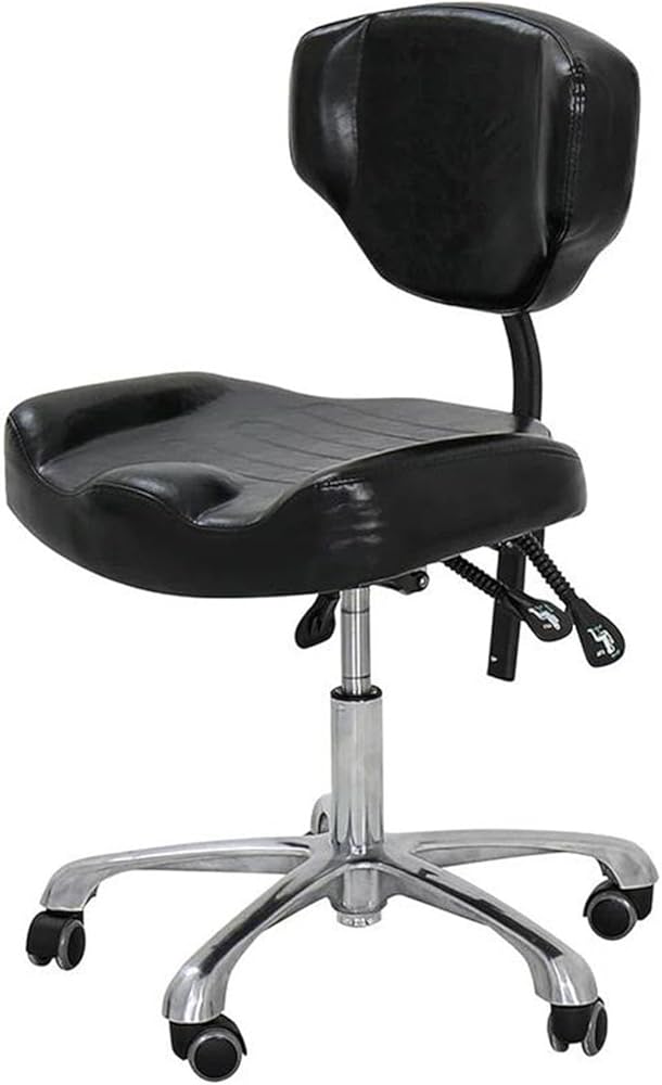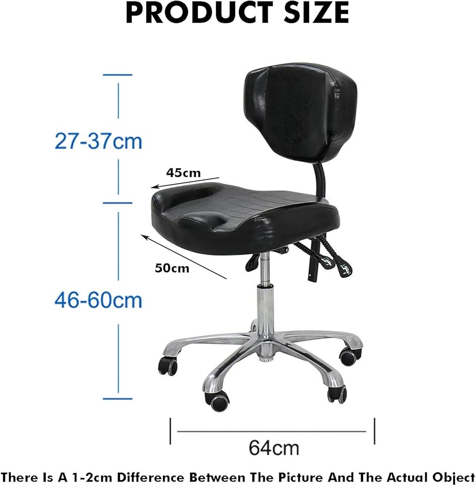 The saddle-shaped rolling chair is designed for professionals and home use, providing comfort, with a height range of 46cm to 60cm and a tilt angle of 20°, so you don't have to compromise anymore