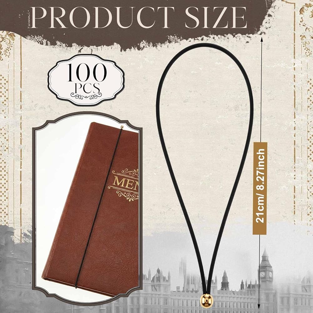 Ample Supply: Each package includes 100 pcs elastic menu band cords, providing an abundant supply for any restaurant or cafe setup. The bulk quantity ensures that you'll always have a black menu band cord on hand, reducing the need for frequent reordering and maintaining a consistent look