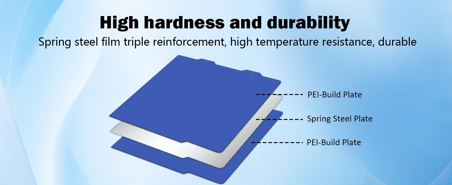 【متينة ومقاومة للتشوه】: تتميز الألواح الفولاذية الزنبركية بمتانة فائقة، والتي يمكن أن تتحمل التآكل والكسر الناتج عن الاستخدام عالي التردد على المدى الطويل، وتحافظ على أداء مستقر حتى بعد الآلاف من نماذج الطباعة ثلاثية الأبعاد.