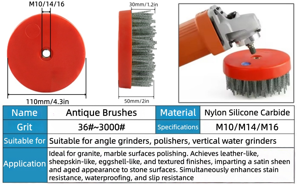 • 【كربيد سيليكون نايلون 】جزيئات حبيبات الكربيد ذات حواف القطع الحادة مدمجة داخل الشعيرات. تحت الضغط أثناء الاستخدام، تنثني الفرشاة بحرية لطحن الأسطح الحجرية من جميع الزوايا، مما يوفر نتائج استثنائية