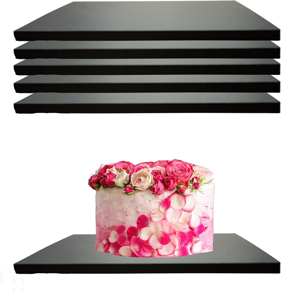 Elevate your cake presentation with these professional-grade cake drum boards. Each black square board measures 12 x 12 inches with a substantial 1/2 inch thickness, providing robust support for your heaviest cake creations. This pack of 5 heavy-duty boards ensures you're well-equipped for multiple projects. Perfect for wedding cakes, tiered celebrations, or any occasion demanding a sturdy, presentable base. The sleek black finish adds a touch of sophistication to your cake display while maintaining structural integrity. These drum boards are ideal for safely transporting and displaying your masterpieces, offering the stability needed for both professional bakeries and home baking enthusiasts. The generous 12-inch square dimension accommodates various cake sizes, making these boards a versatile addition to your baking supplies.