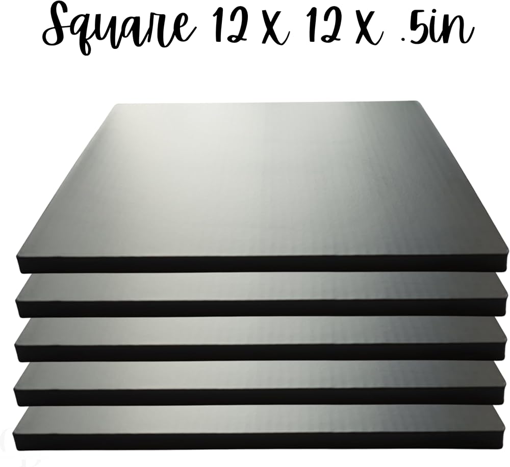 DIMENSIONS: Square cake drum board measures 12 x 12 inches with 1/2 inch thickness, providing a sturdy base for cake decorating and display