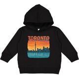 Experience the vibrant beauty of Toronto with this stunning sunset skyline. Perfect for fans of this iconic city, this Toddler Hoodie captures the essence of Toronto with its silhouette against a colorful evening sky.