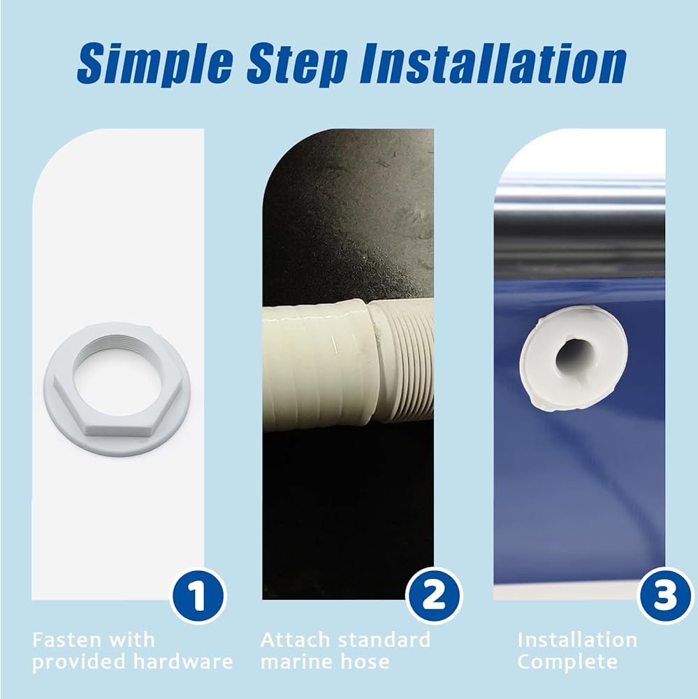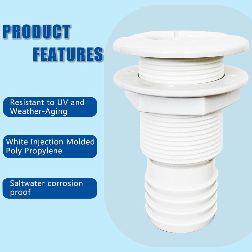 【PERFECTLY COMPATIBLE】: Through hull fittings for boats can be used in various marine systems, including water intakes, bilge pumps, livewell installations, and more. Please select the appropriate Thru-hull fitting size for your boat to ensure a correct and secure connection, prevent leaks and maintain the integrity of the hull.