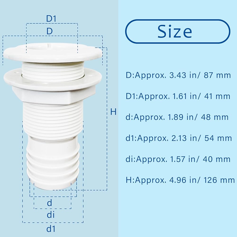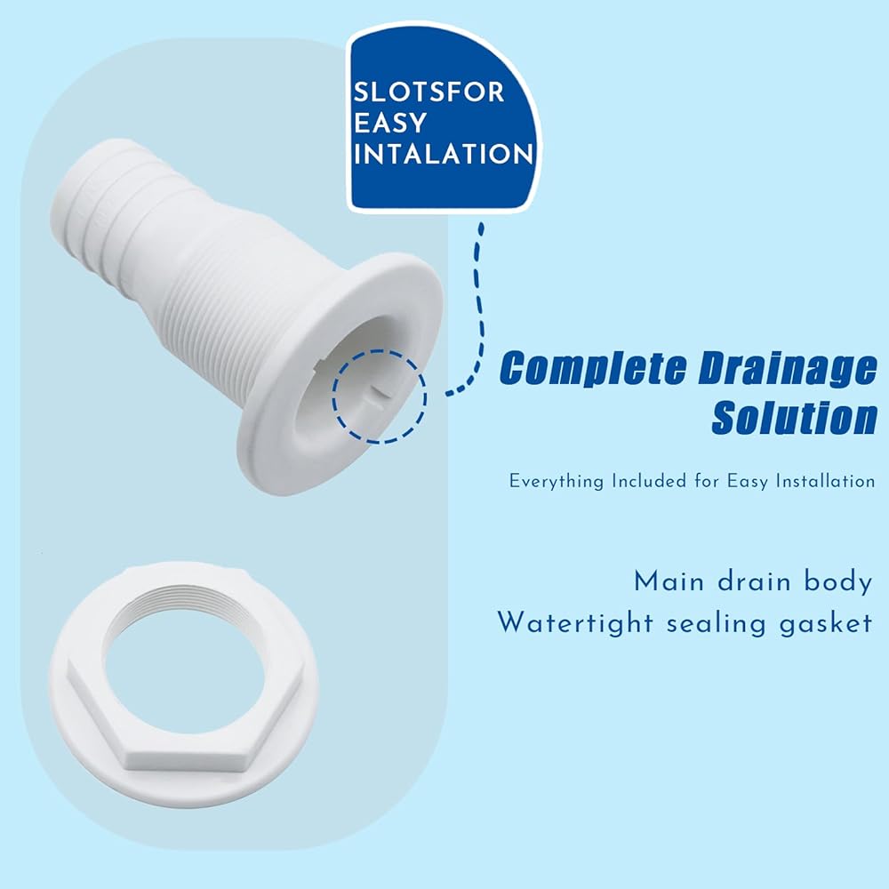 【WIDE APPLICATION】Thru drain connector is ideal for drainage holes, sink drainage and bilge pump overboard drains,their multipurpose functionality adds convenience to your boating experience, making it an essential component of your boats.In addition,through hull fitting tool also suitable for caravans / RVs, trucks and kitche etc.