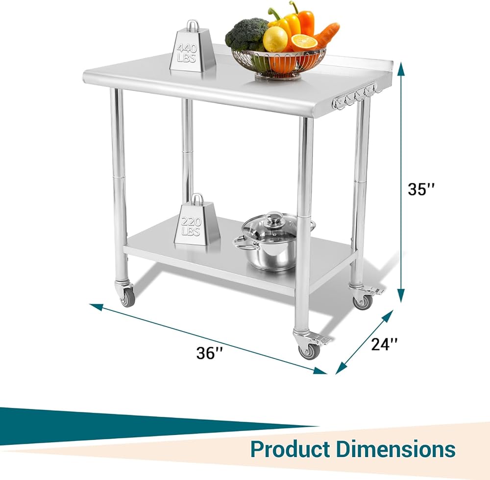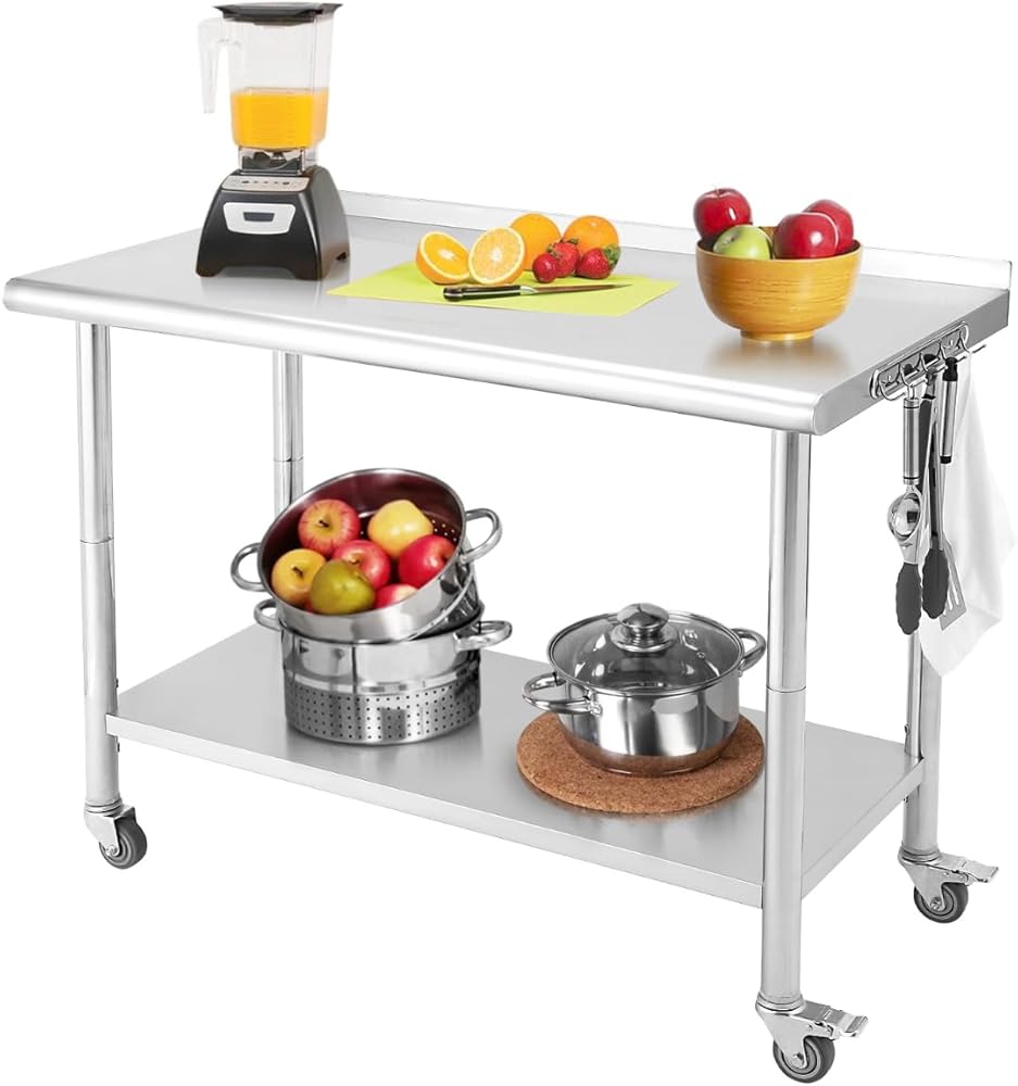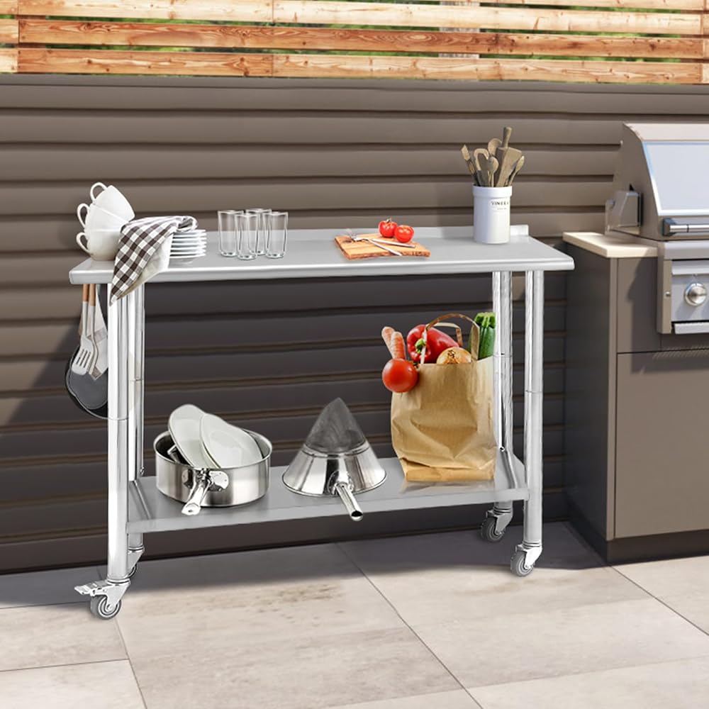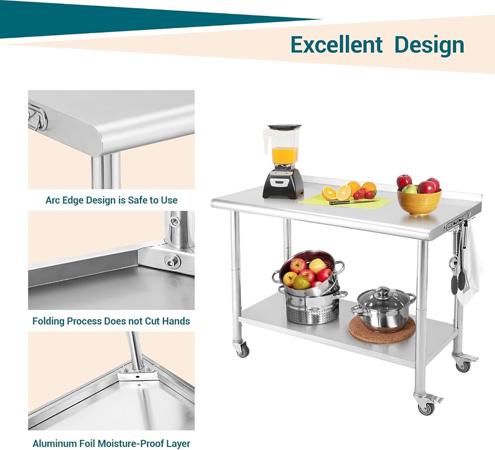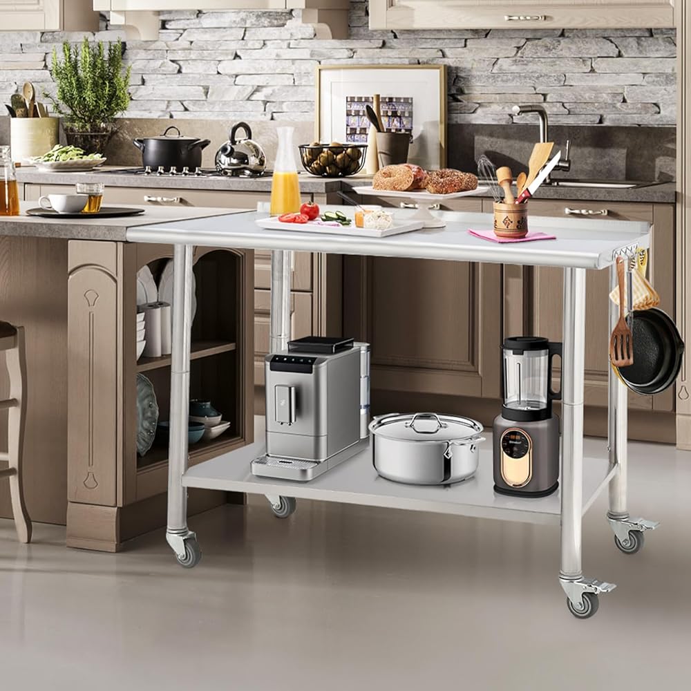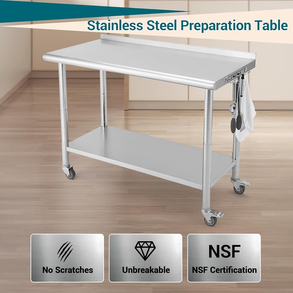 Looking to upgrade your workspace? This stainless steel prep table combines durable construction, easy mobility, and smart features—imagine the efficiency and organization it could bring to your kitchen, restaurant, or laundry room!