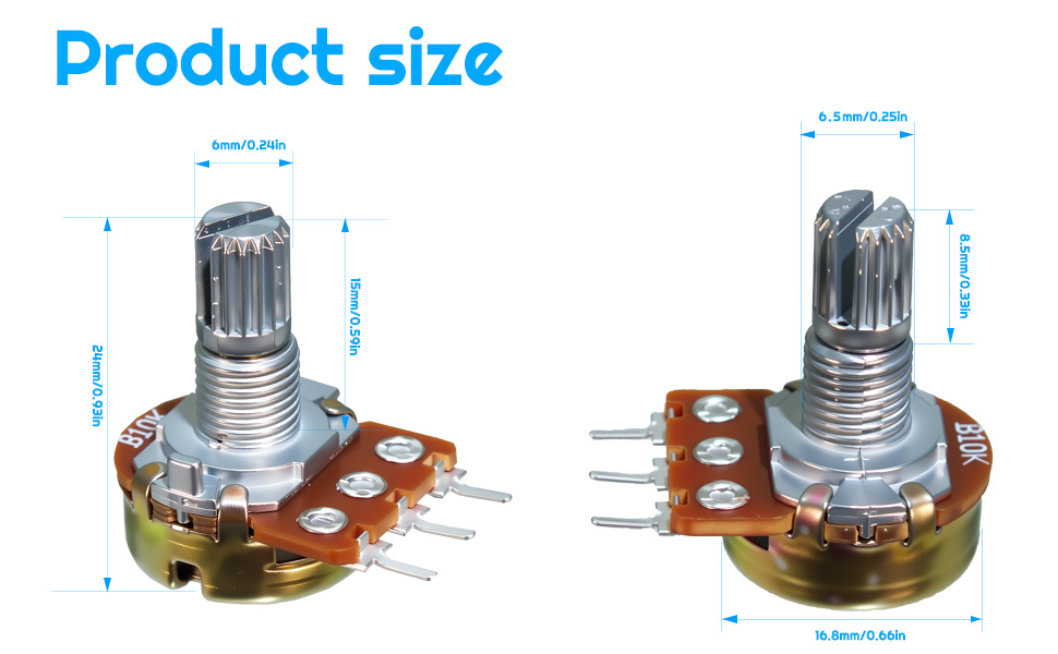 نوعية جيدة - مقاييس الجهد هذه عبارة عن مقاييس جهد دوارة ذات سلك واحد مع 3 أطراف، وسلك واحد، ومقبض WH148 قياسي. مقابض ومفاتيح رائعة.