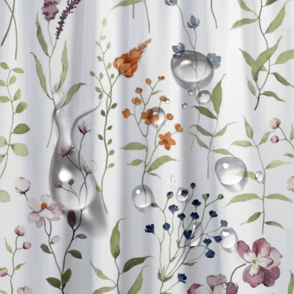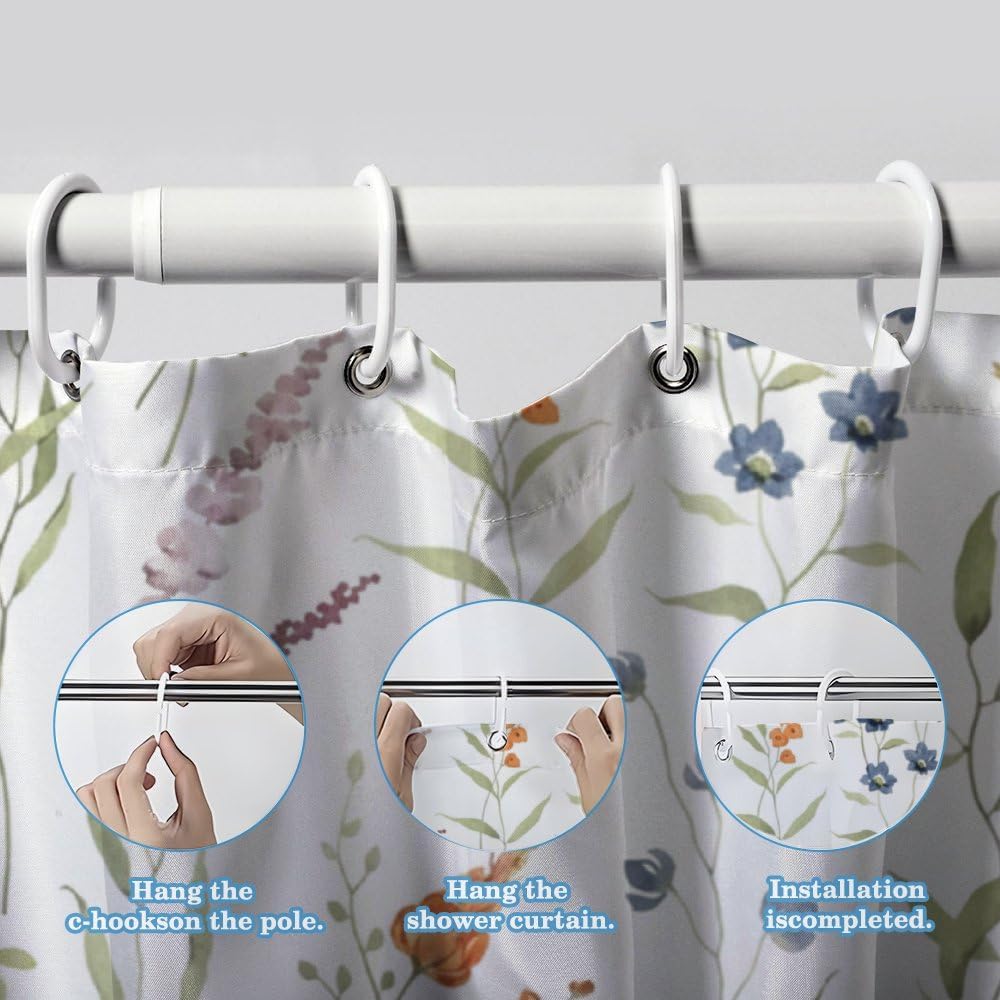 • 【East To Install】Equipped with 12 rust-proof metal grommets and thickened C-shaped curtain hooks, this cottage core curtains features grommet holes that fit all types of rings or hooks for easy replacement and cleaning. The metal grommets prevent hole tearing and extend the curtain's service life. Installation is quick and hassle-free—simply hang the grommets onto your shower rod, making farmhouse shower curtains for bathroom suitable for various bathroom hanging needs.