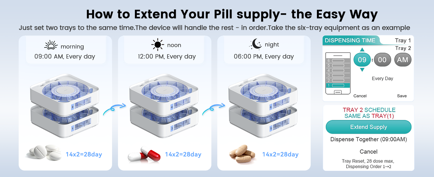 • 【سهولة التحكم في التطبيق وإعداد الصوت】قم بتعيين خطط الجرعات أو تعديلها مباشرة على الجهاز أو من خلال تطبيق Ideerfit. تعمل المطالبات الصوتية على توجيه كبار السن خلال الإعداد، مما يضمن الوضوح والاستقلالية. تطبيقنا المصاحب مجاني للاستخدام، ولا يتطلب أي اشتراك، ويتضمن تحديثات مجانية للبرامج.