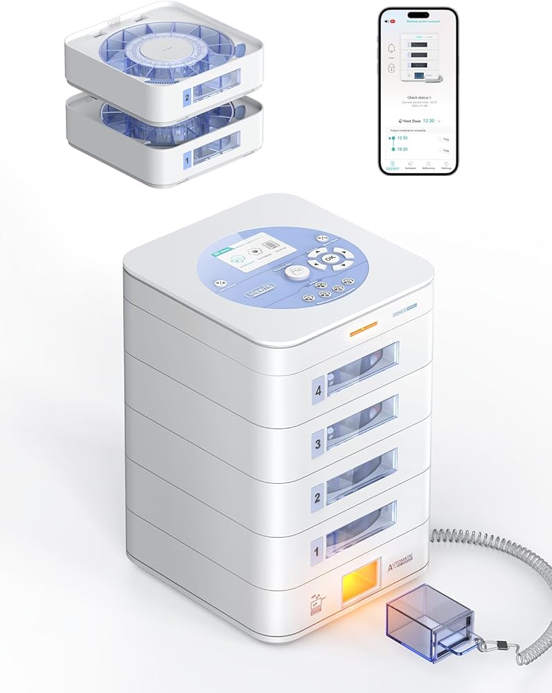 • 【مراقبة يتم التحكم فيها من خلال التطبيق وقفل رقمي آمن】تتبع تاريخ الجرعة، وتحليل الالتزام، وضبط الخطط في الوقت الفعلي. يمنع القفل الرقمي الوصول غير المقصود، وتسمح خيارات إلغاء القفل عن بعد بالتوزيع في حالات الطوارئ عند الحاجة. كن منظمًا، وكن آمنًا - كل جرعة، كل يوم.