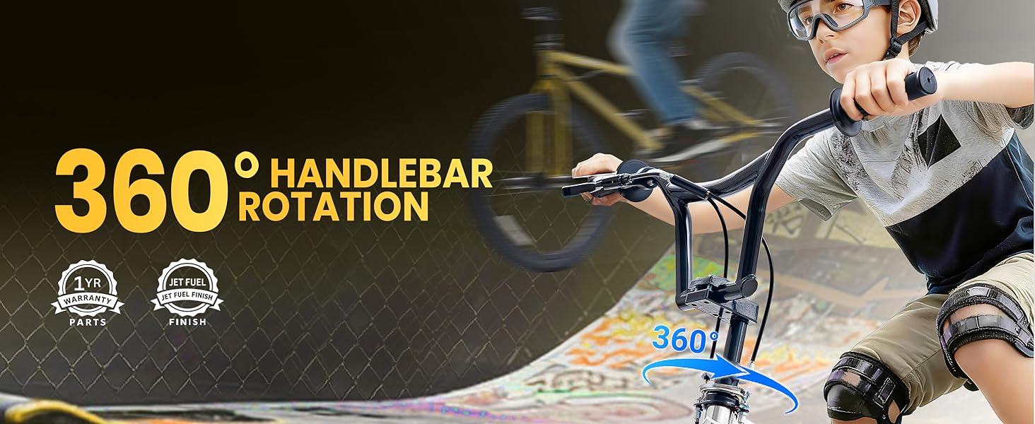 • مقاسان احترافيان: 20 بوصة (4'0 بوصة - 5'0 بوصة) و24 بوصة (4'7 بوصة - 5'5 بوصة)! على عكس دراجات الأطفال العامة، تتميز دراجات BMX للأطفال لدينا بهندسة تم اختبارها من أجل خفة الحركة. شاهدهم وهم يتقدمون من الدورات المبتدئة إلى الحيل الجوية - دراجة واحدة تغذي سنوات من النمو!