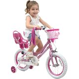 Girls Bike Size Guide: Choose the perfect fit for your child: the 12-inch bike fits 2-4 year olds (33-41in height, max 100lbs), 14-inch fits 3-5 year olds (35-47in height, max 100lbs), 16-inch fits 4-7 year olds (41-53in height, max 100lbs), and 18-inch fits 5-9 year olds (43-59in height, max 120lbs)