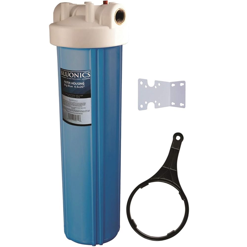💫𝐂𝐎𝐌𝐏𝐋𝐄𝐓𝐄❯❯❯ يأتي فلتر المياه Blounics الخاص بنا مزودًا بغطاء صلب كبير كامل مقاس 20 بوصة، ومدخل/مخرج NPT مقاس 1 بوصة، مع مفتاح ربط بلاستيكي، و4 × براغي، ودعامة معدنية