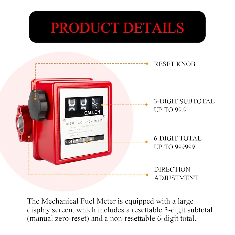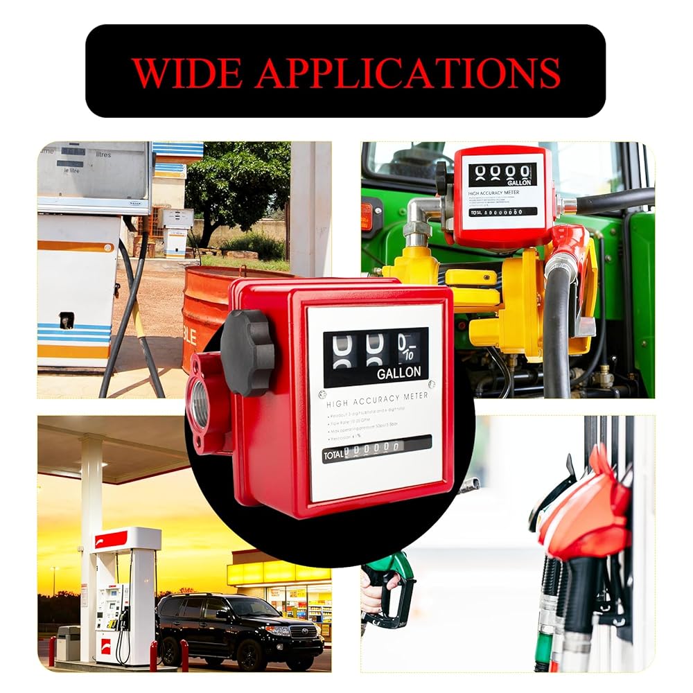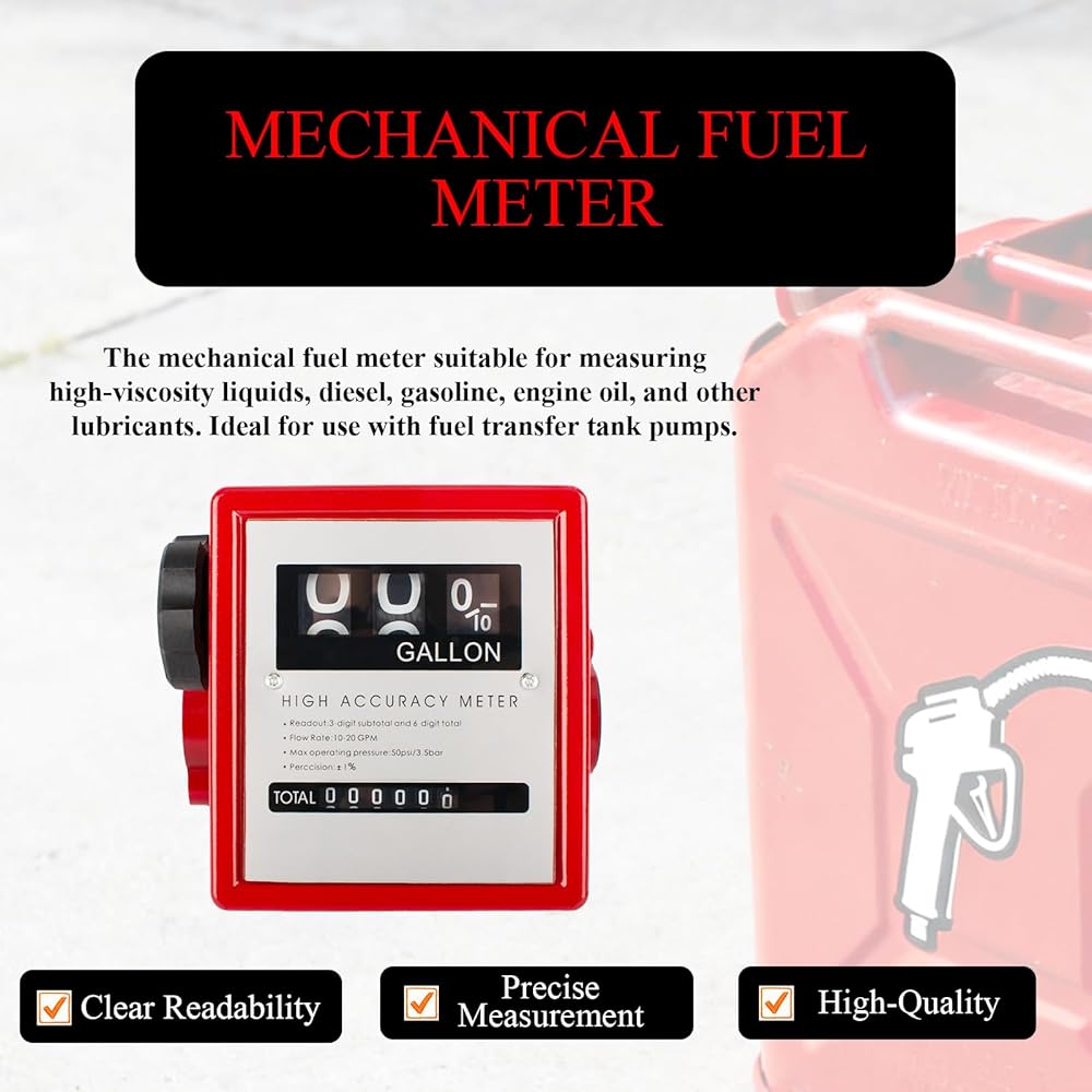 【Wide Range of Applications】The mechanical fuel meter suitable for measuring high-viscosity liquids, diesel, gasoline, engine oil, and other lubricants. Ideal for use with fuel transfer tank pumps.