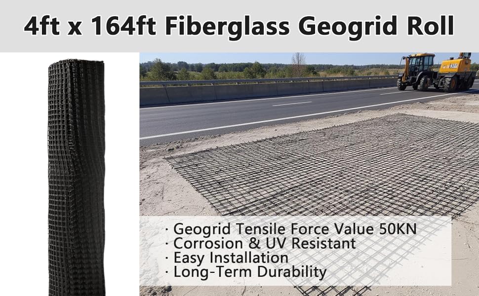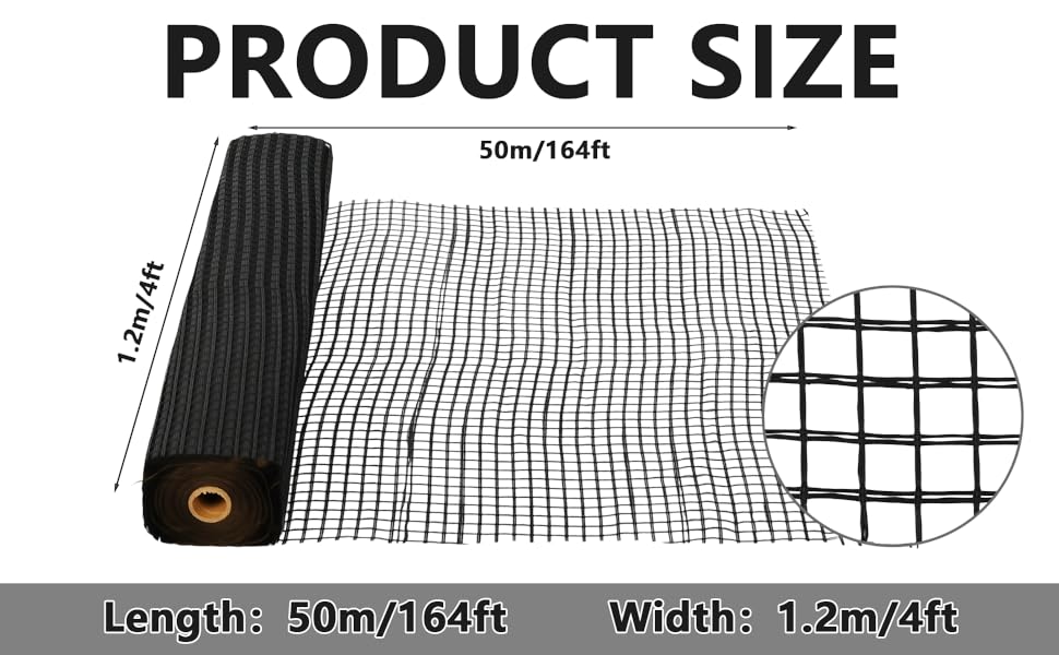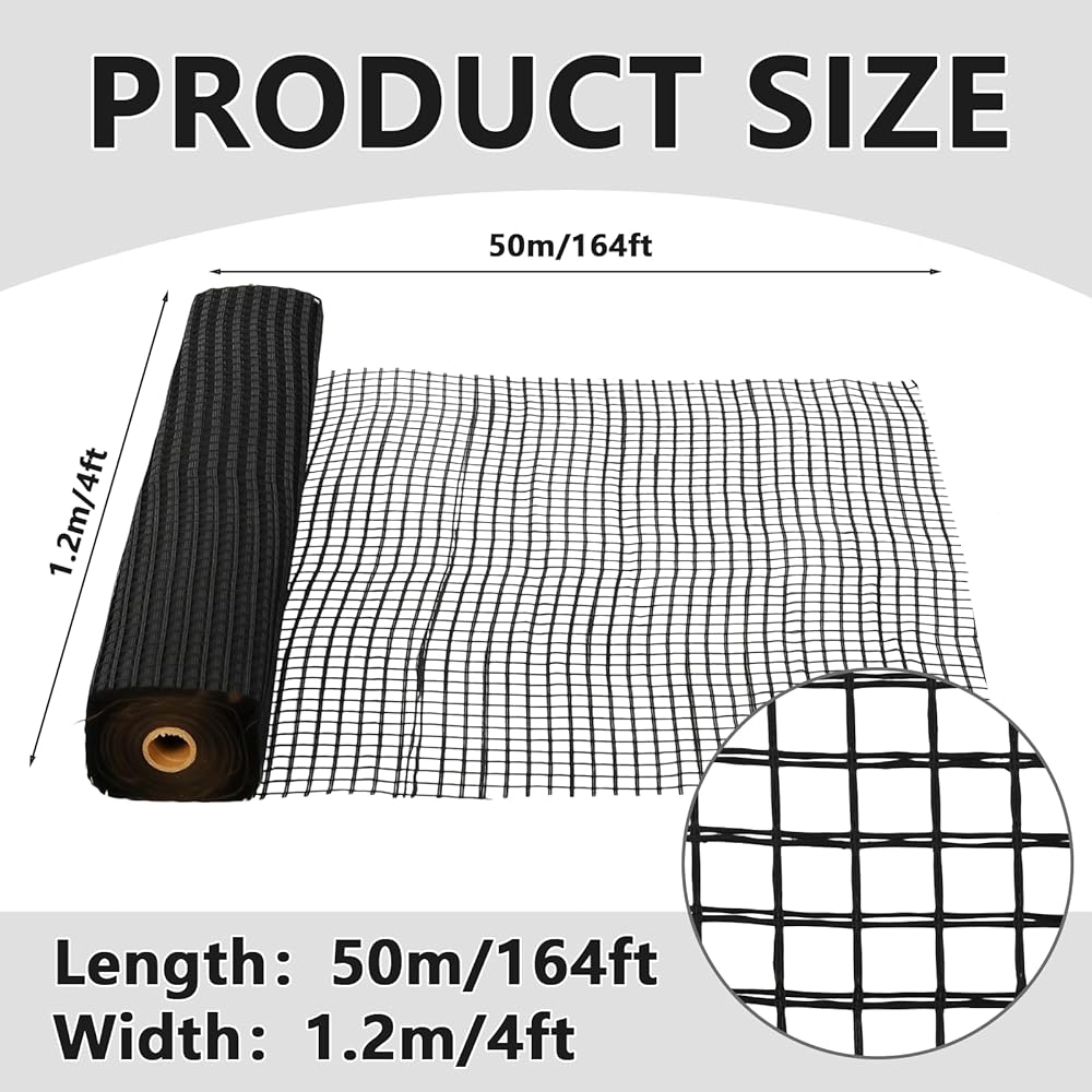 Large 4 × 164 ft Roll for Maximum Coverage: Covers up to 656 sq ft per roll, making it ideal for large-scale projects like geogrid for gravel driveway, landscaping, and construction—fewer seams, faster installation, and better efficiency