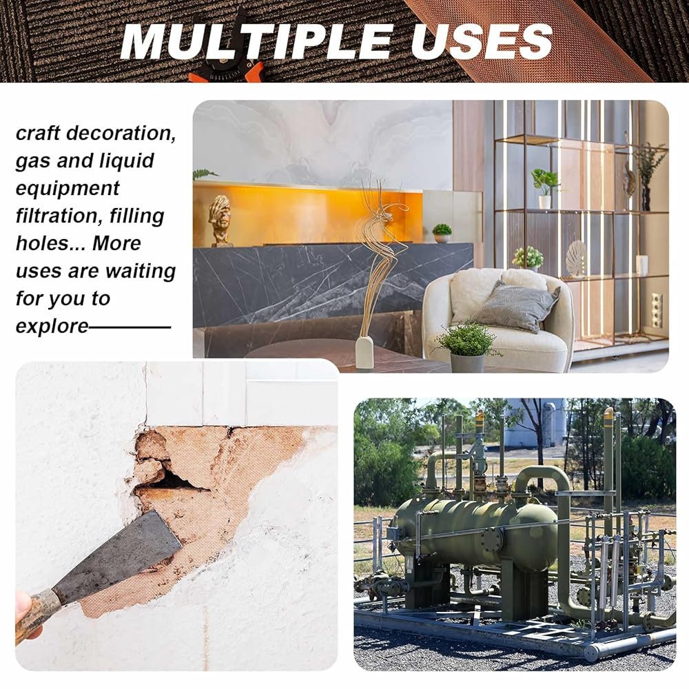 • Other Uses: more precise than other copper meshes, it also prevents smaller insects from entering the protected space; Breathable yet translucent, it maintains good ventilation and lighting; It can be widely used for various purposes such as Faraday cages,rodent control,copper mesh water filter, filling cracks and holes, gardening, window screens, and DIY projects; It can also be used as a cleaning brush to remove dirt and grime from pots and pans and other cookware