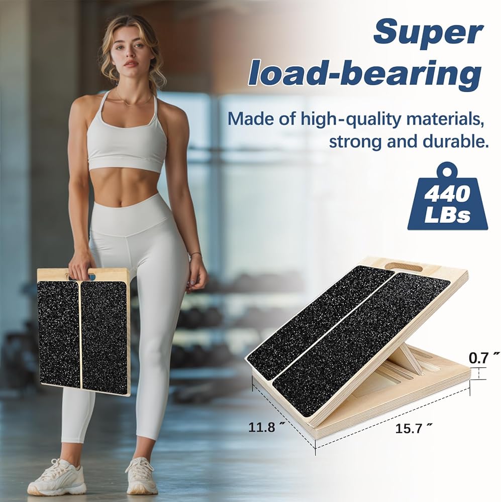 لوح مائل من الخشب الصلب الفاخر: هذا اللوح المائل لتمرين الساق للعلاج الطبيعي مصنوع من 11 طبقة من قلب خشب الحور من الدرجة AA، هذا اللوح الإسفين مصنوع من أجل قوة وثبات فائقين. مع سعة وزن 440 رطل، يمنع سطح ورق الصنفرة PVC وقاعدة EVA غير القابلة للانزلاق الانزلاق أثناء تمدد الساق أو القرفصاء.