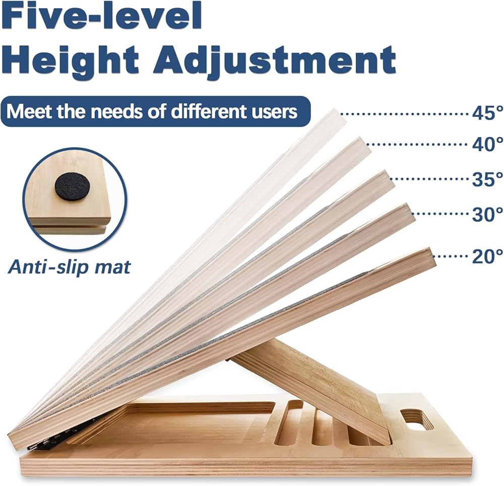 مثالي لجميع مستويات اللياقة البدنية: ارفع مستوى التمدد اليومي باستخدام لوحنا الخشبي المائل. هذا مناسب للمبتدئين والرياضيين المخضرمين وجميع أنواع الجسم، ومناسب لأي مكان