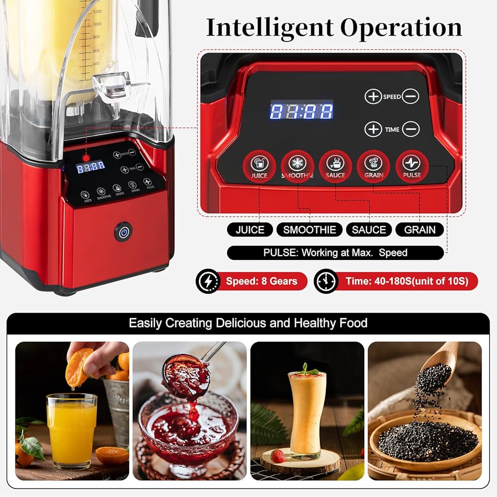 خلاط 2200 واط للعصائر - خلاطات تجارية عازلة للصوت وهادئة، وعاء من الفولاذ المقاوم للصدأ وواقي من الرذاذ قابل للإزالة، كسارة ثلج شديدة التحمل لمطعم وبار المنزل والمطبخ ومخفوقات العصائر