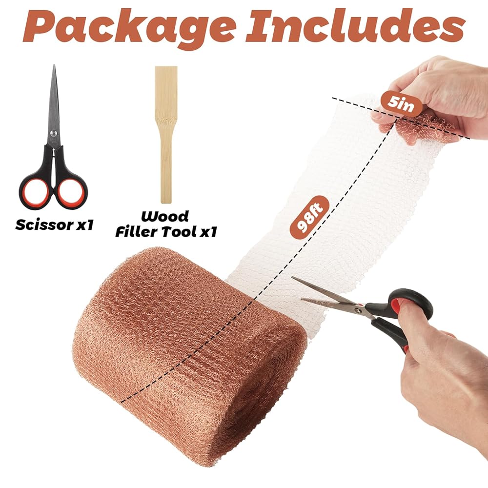 LANIAKEA Copper Mesh Rodent Control Kit 5in x 98ft Rustproof Copper Mesh Roll for Rodent, Bat & Snail DIY Blocker Weep Hole Filler & Wool Mouse Trap