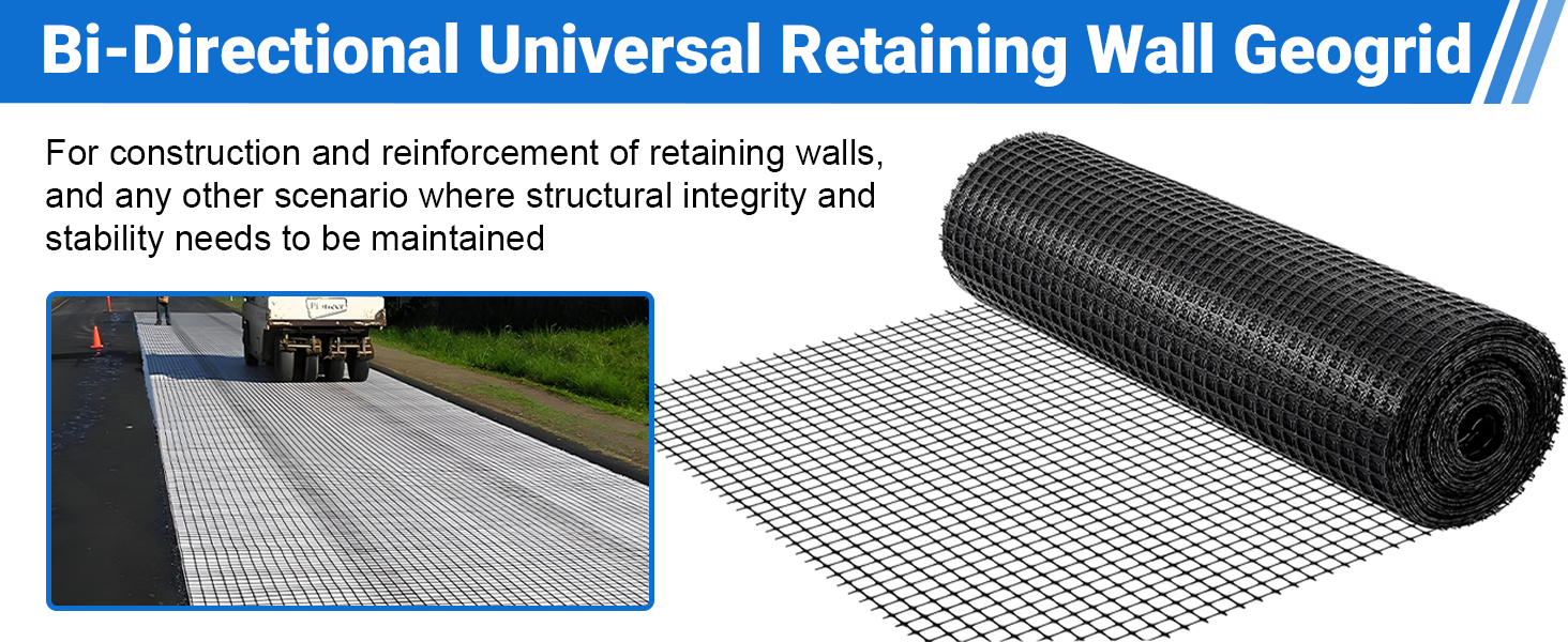 STABILITY: The geogrid for retaining wall features 0.8 × 0.8-inch mesh holes with an aperture stability of 0.32m-N/deg. Geogrids uniform structure, high flexibility, and even stress distribution prevent deformation, ensuring reliable and long-term stability for driveways and retaining walls.