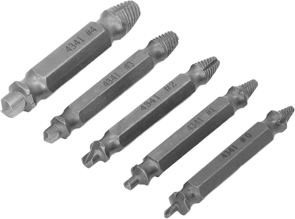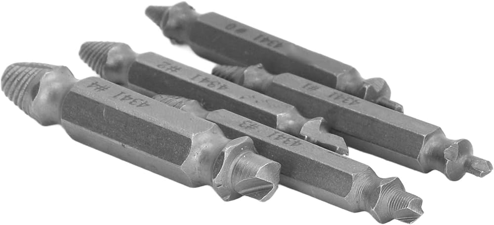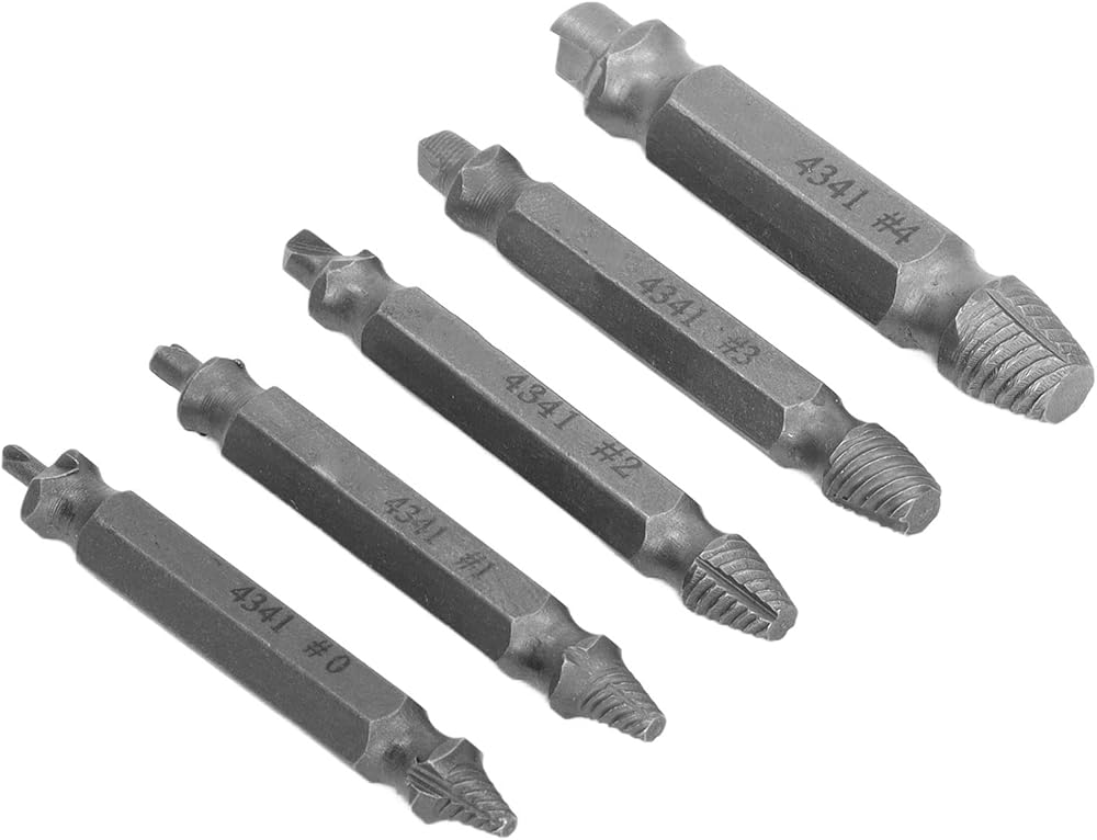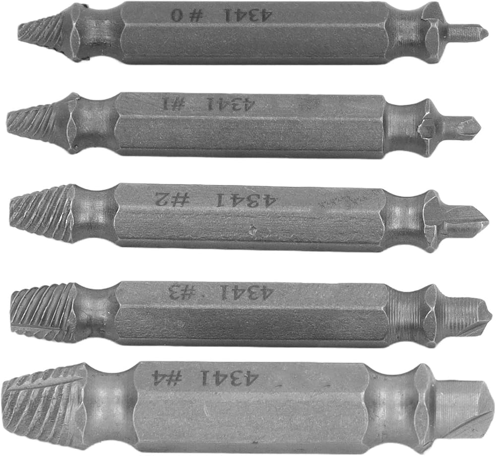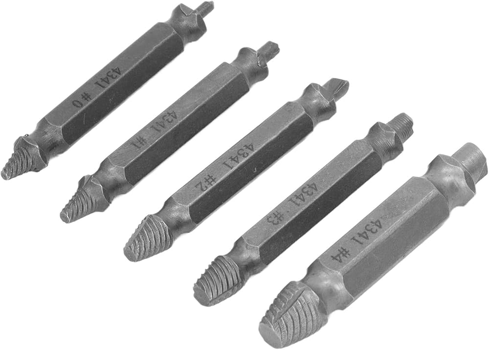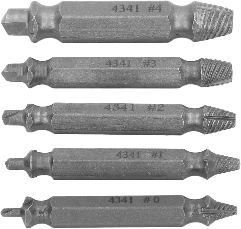 • [EFFORTLESS SCREW REMOVAL] This high speed steel screw extractor set makes removing stripped or broken screws a breeze. Its double head design bites into screws for reliable extraction while the universal hex shank works seamlessly with most drills for powerful torque.