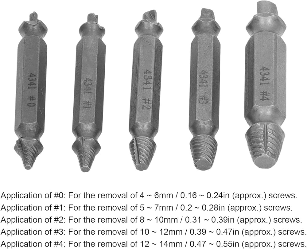 • [5 SIZE OPTIONS FOR VERSATILITY] The kit includes 5 precisely sized extractors to handle screws from 4mm to 14mm. Whether you're working with small electronics or larger machinery components there's an extractor perfectly sized for your needs all in one convenient set.