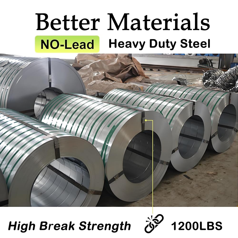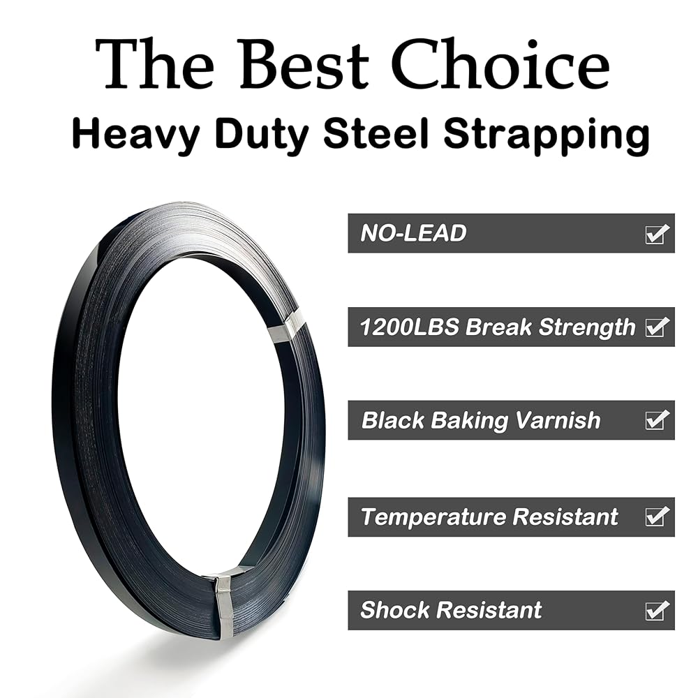 👉 متين وقوي: ملف ربط فولاذي، عرض 1/2 بوصة، طول 200 قدم، سمك 0.020 بوصة وقوة كسر 1200 رطل تتفوق على بدائل البوليستر والبولي بروبيلين. فهو يضمن تجميعًا متينًا، مما يوفر مقاومة فائقة للقطع.