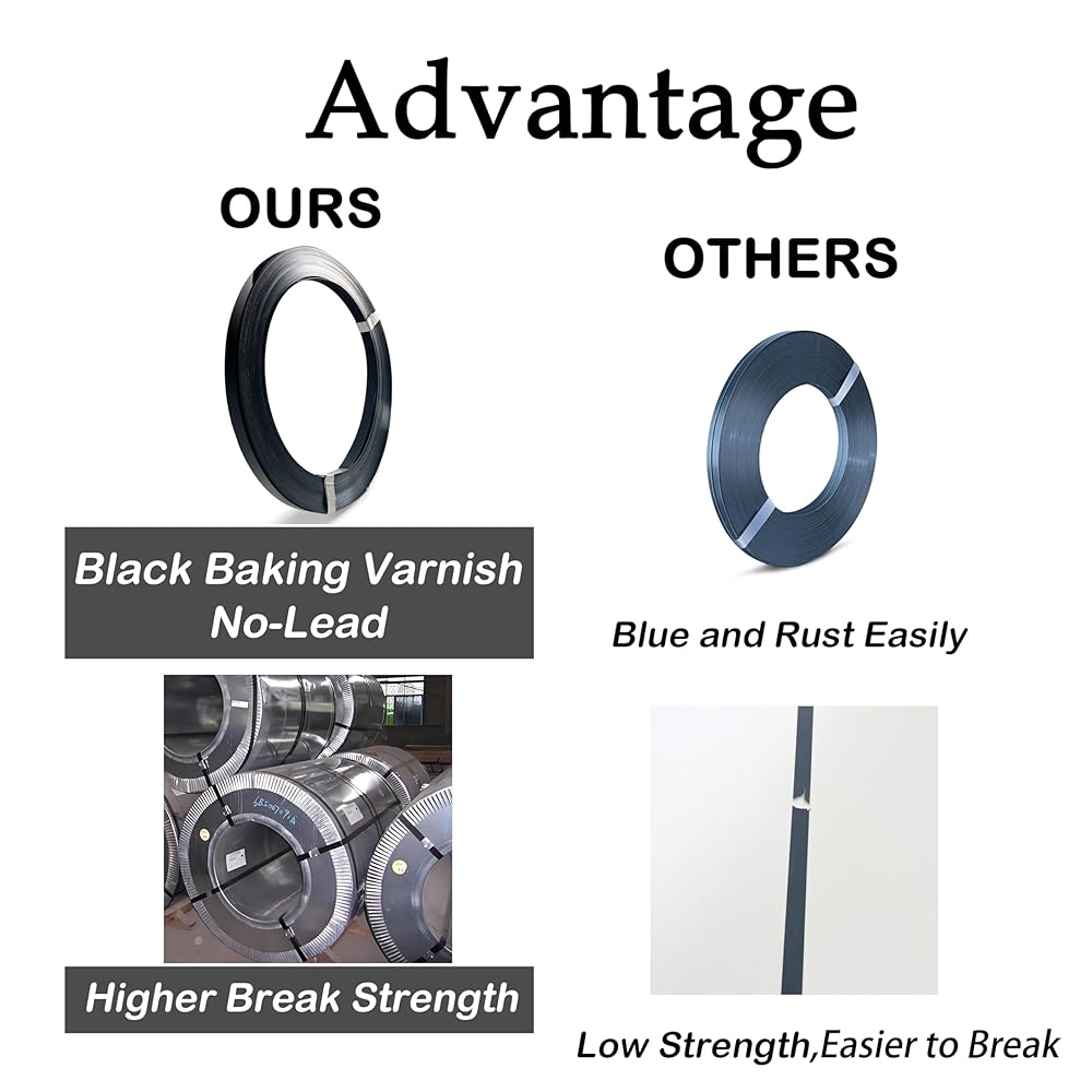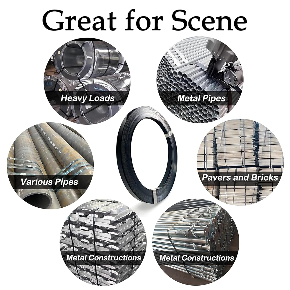 👉 حواف مستديرة وناعمة: حزام معدني ذو حواف ناعمة يقلل من مخاطر الإصابة ويحمي العناصر أثناء التجميع. يتم ضمان التعامل الآمن مع الأشرطة الفولاذية. استخدم قفازات التغليف عند العمل باستخدام مواد الربط لمزيد من الأمان.