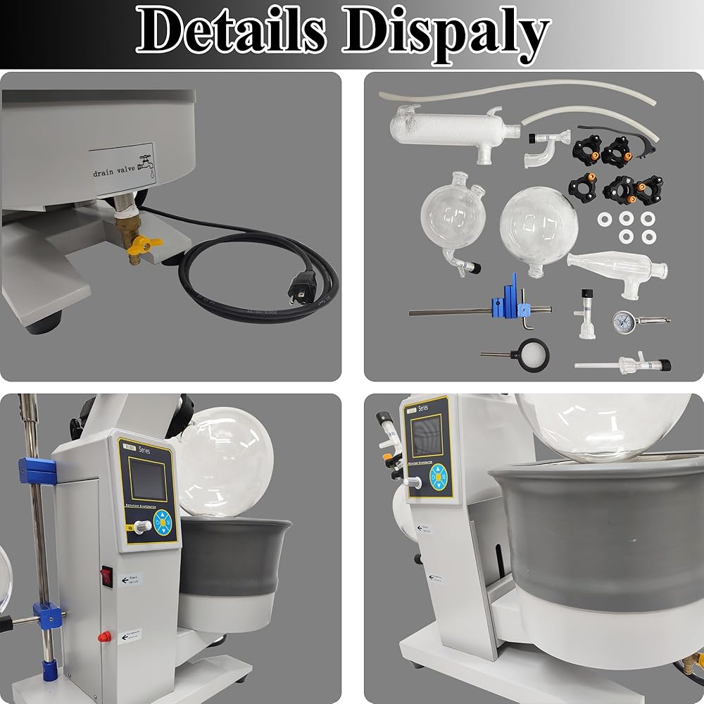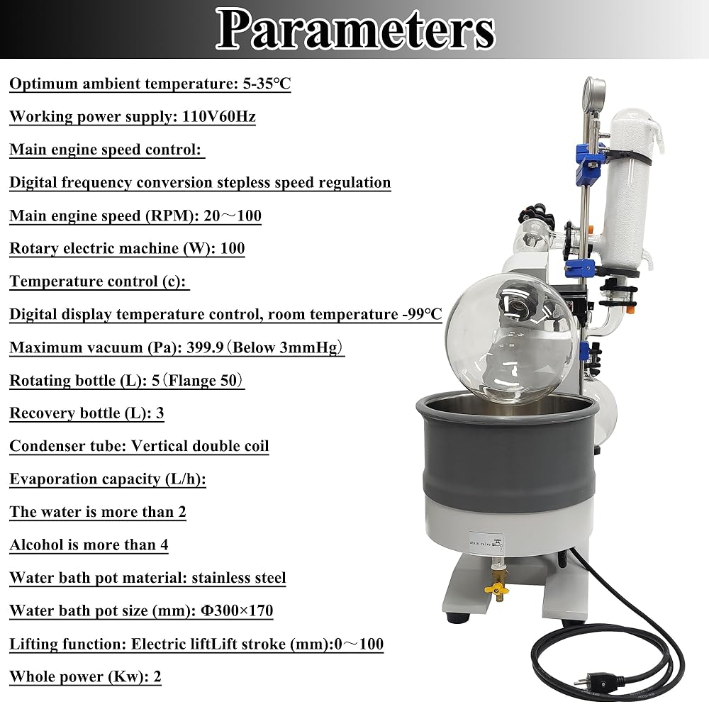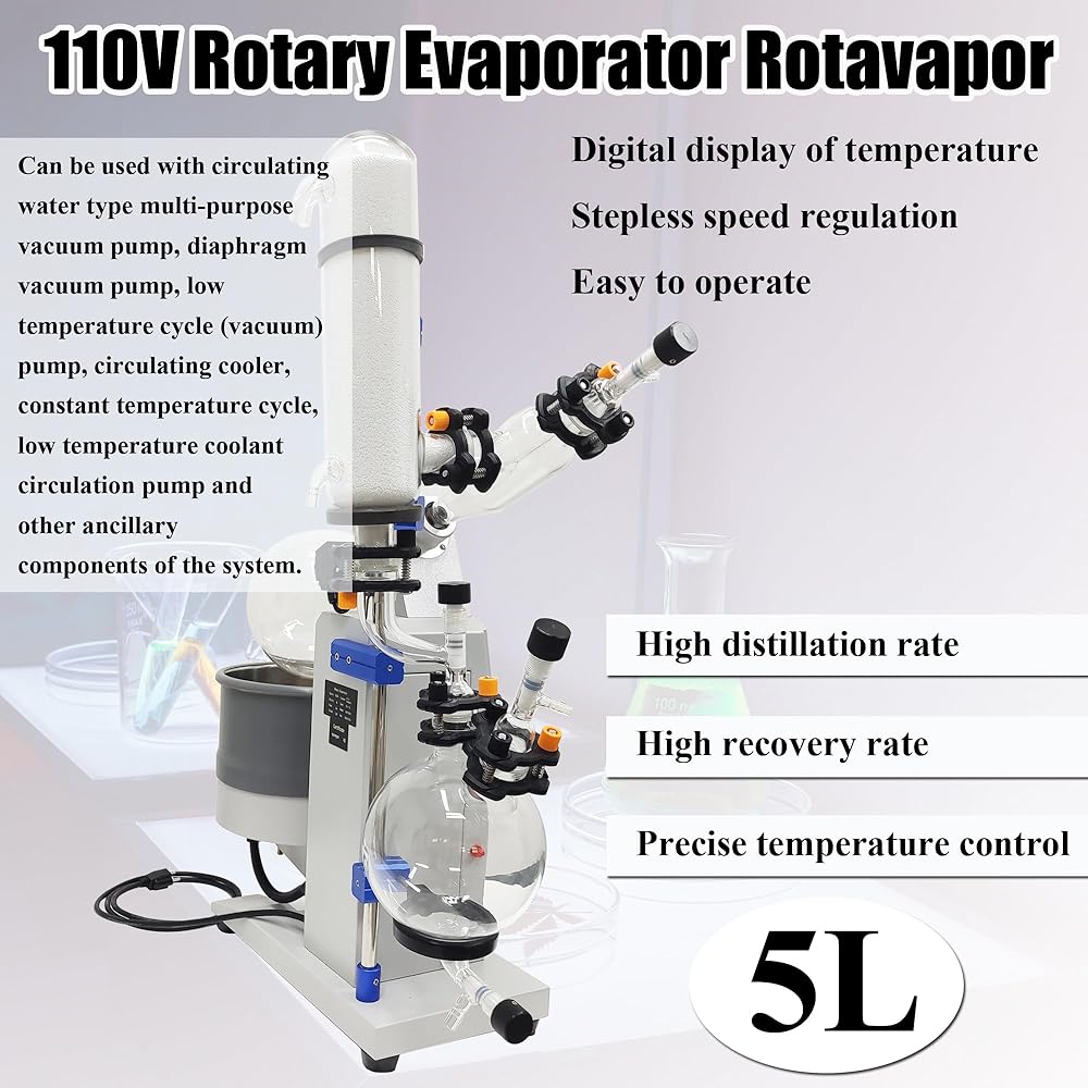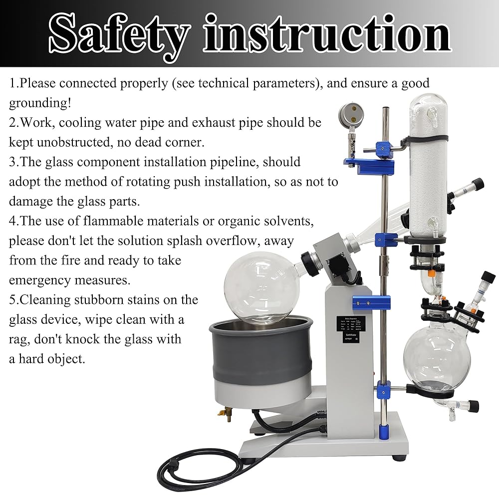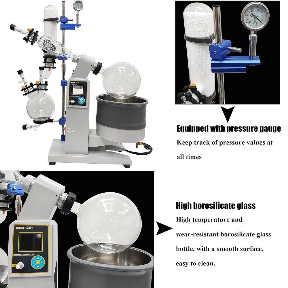 • [EASY TO OPERATE]This explosion-proof intelligent 5L electric rotary evaporator comes with a pressure gauge. Electronic intelligent temperature control with digital display. High temperature control accuracy, more stable temperature control, and more intuitive temperature display. Easy and convenient operation