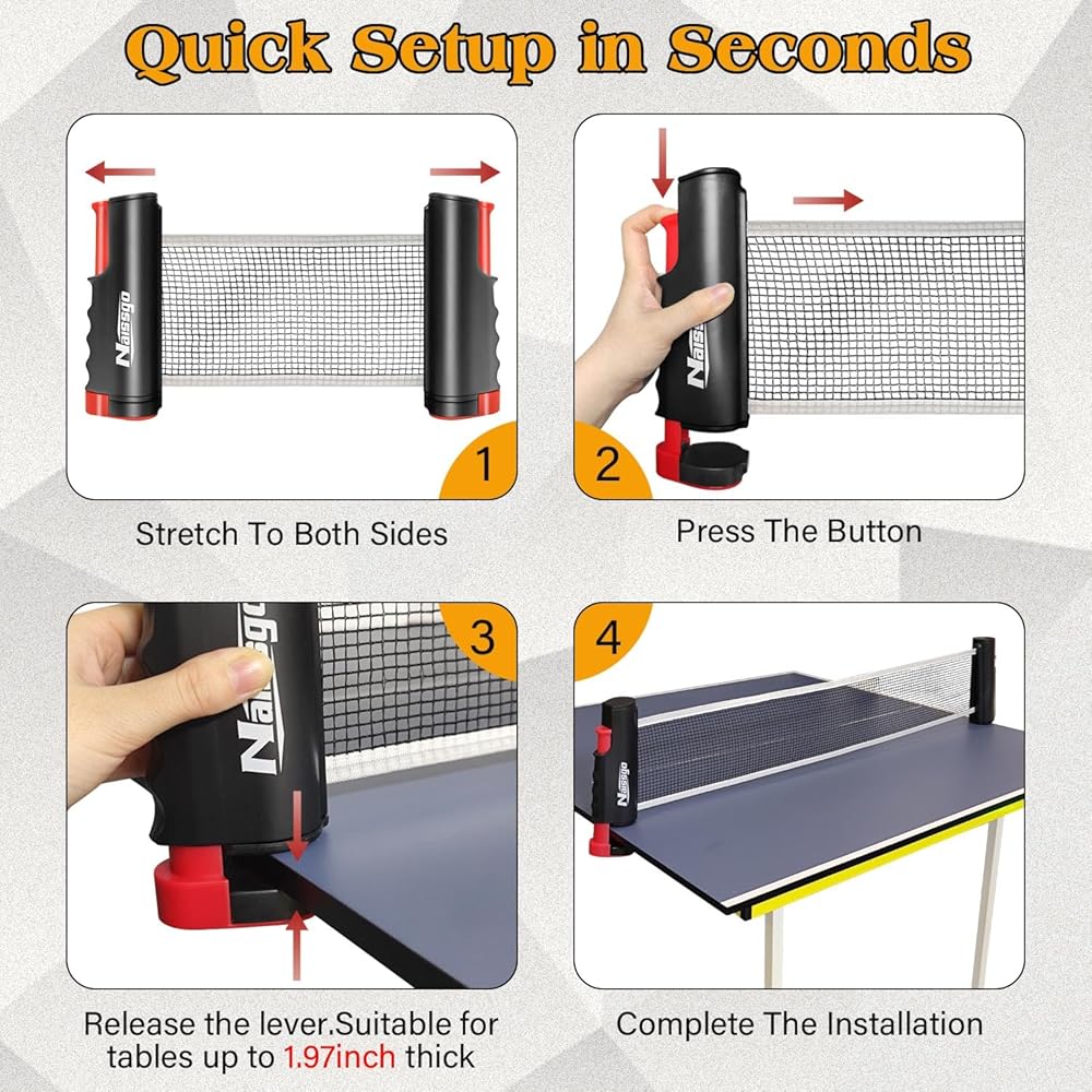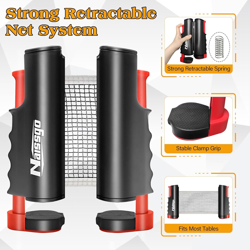 العب في أي مكان وفي أي وقت - يمكنك بسهولة تحويل أي طاولة تقريبًا إلى طاولة بينج بونج. مثالية للاستخدام الداخلي والأنشطة الخارجية والسفر والتخييم والنزهات واستراحات المكتب والترفيه المنزلي.