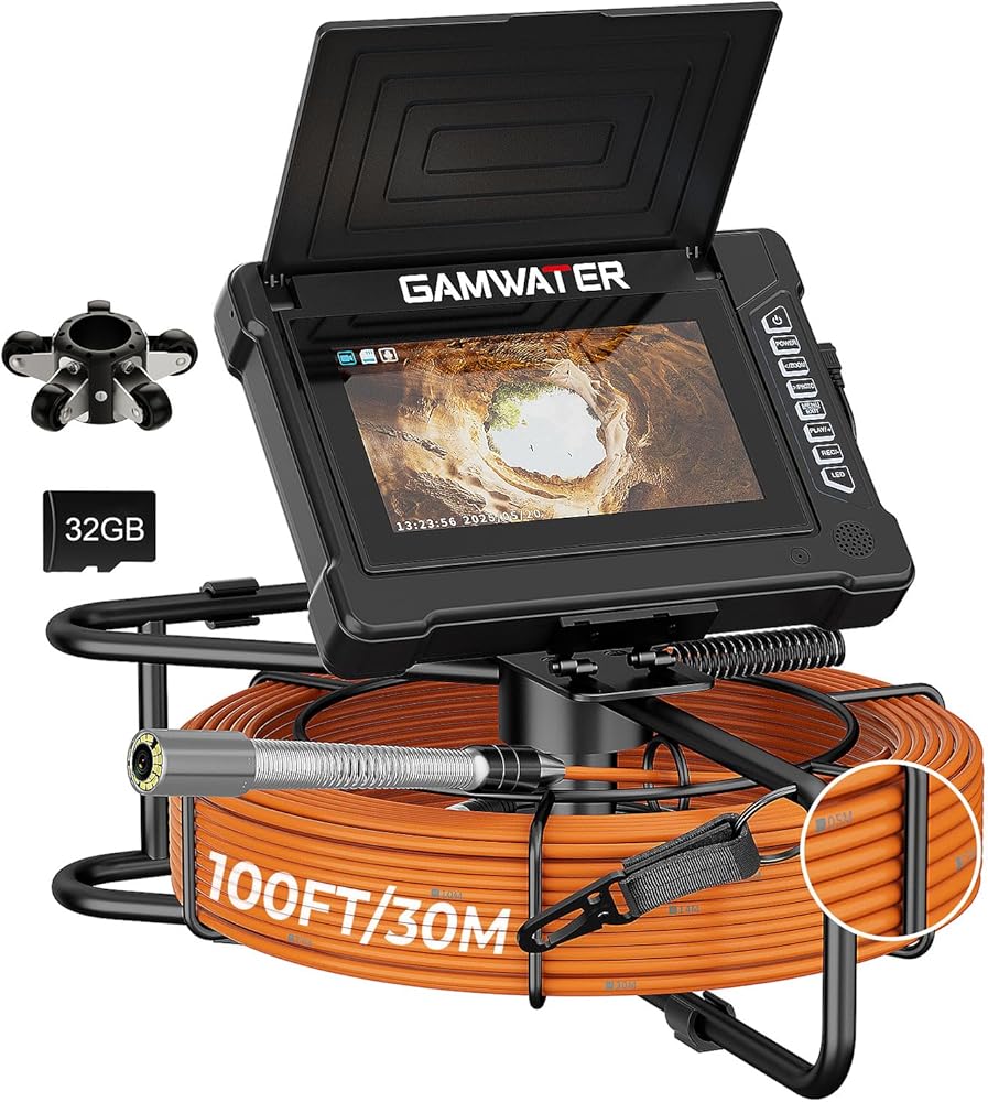 【شاشة DVR مقاس 7 بوصة مع واقي من الشمس】 تم تجهيز كاميرا فحص خطوط أنابيب الصرف الصحي GAMWATER بشاشة مقاس 7 بوصة لعرض مناطق التفتيش التي يصعب الوصول إليها. يأتي مزودًا ببطاقة TF بسعة 32 جيجابايت، مما يتيح لك مشاهدة اللقطات الحية بسهولة وحفظ مقاطع الفيديو والصور. تتميز الشاشة أيضًا بمظلة للشمس، مما يجعلها مثالية لعمليات الفحص الخارجية. عندما تتعرض الشاشة لأشعة الشمس، يضمن حاجب الشمس رؤية أفضل لتجربة مشاهدة محسنة.