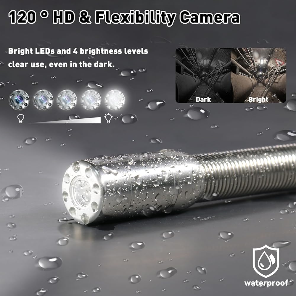 • 💡Pipeline Inspection Camera with 4 Adjustable LED Lights for significantly improved brightness in dark or muddy pipes, ensuring a clearer viewing experience.