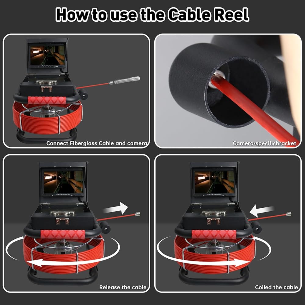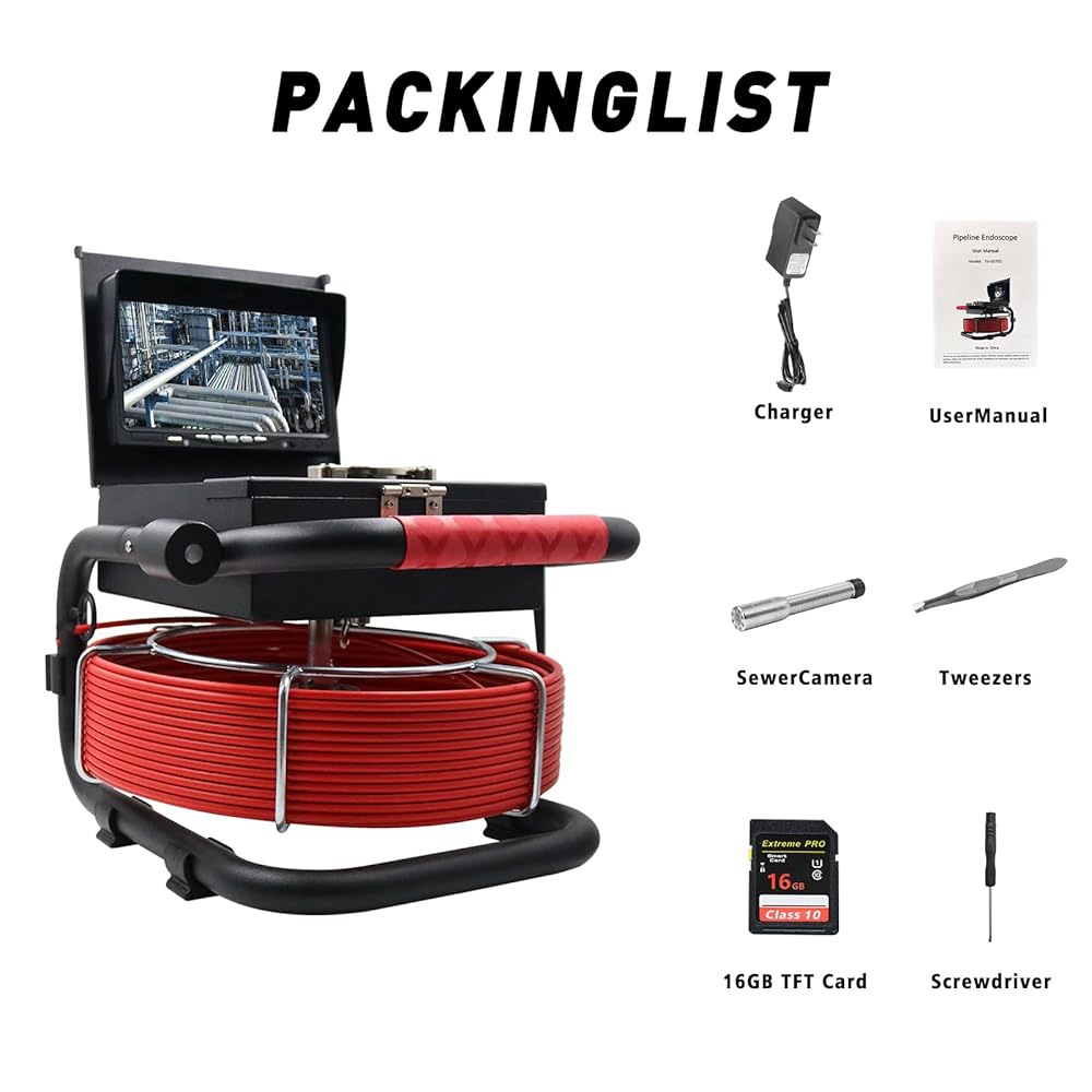 • 🎥Plumbing Inspection Camera with HD Camera – Capture crisp visuals on a 7" color display and record video/audio in real time with the built-in DVR. Includes 32GB TF card.